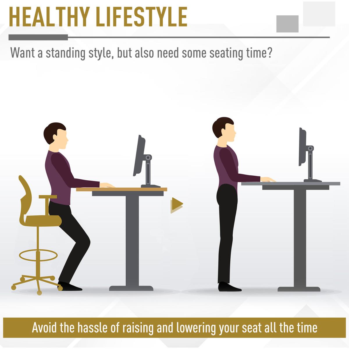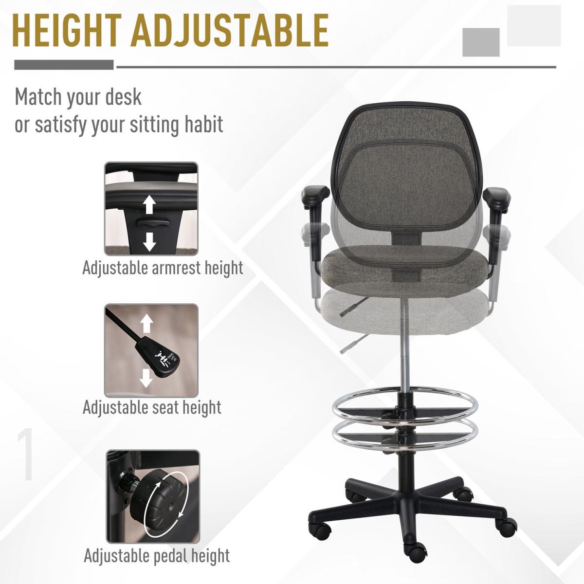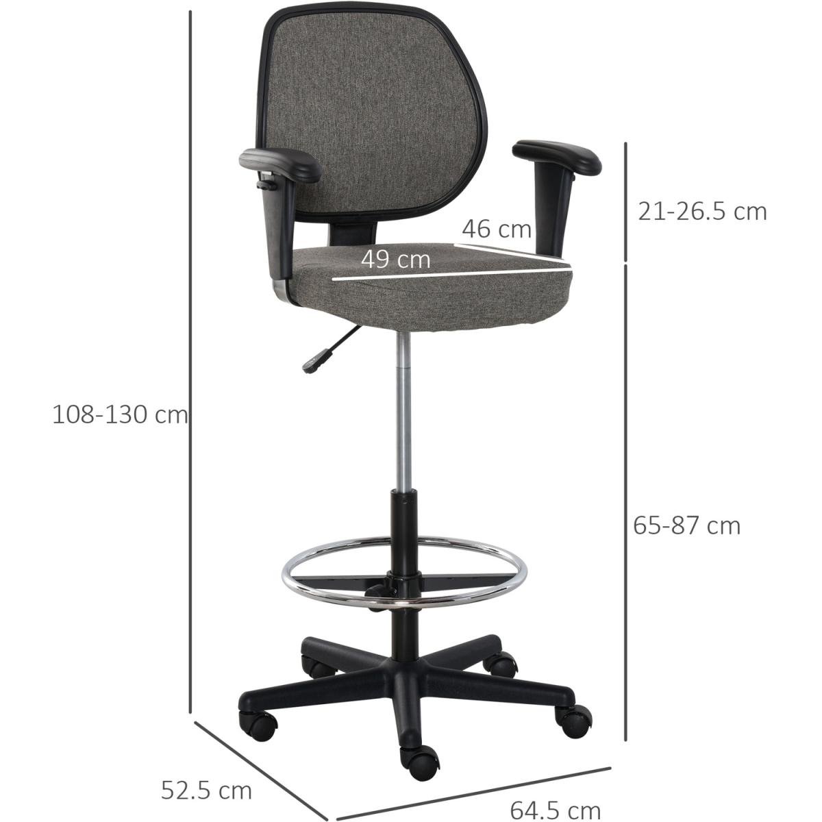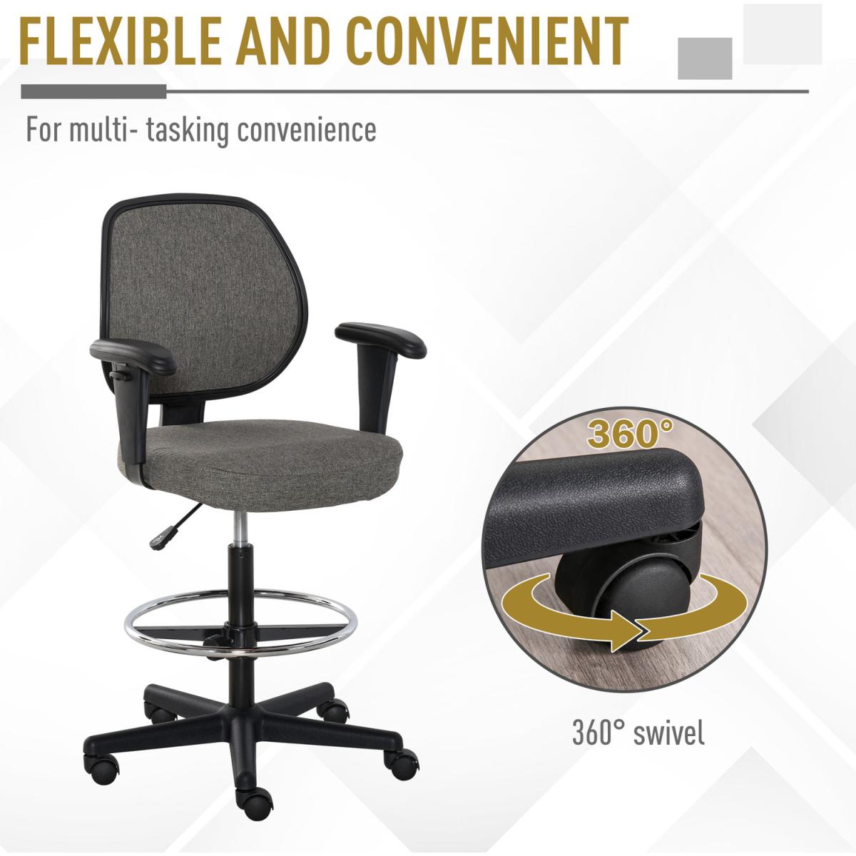 Ensure you're working comfortably when using taller surfaces with this draughtsman chair from Vinsetto. It's made from quality materials: soft fabric, thick sponge, and a solid frame so it can be used every day. Adjustable sturdy seat height and armrest height to cater for you, with a footrest so your legs aren't dangling. A must-have piece to increase work productivity.