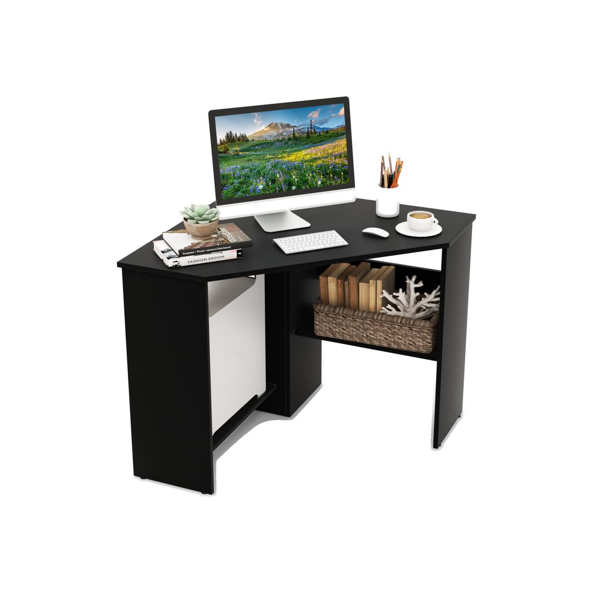 Only requiring simple assembly, you can get an ideal corner desk with storage. The reliable frame ensures stable support, which is sufficient for daily studying or working. What's more, thanks to the 90 degree design, the computer desk makes full use of each corner, while its two open shelves offer extra storage. More, 2 cable management holes are fitted to avoid chaos on the desk. And it also has anti-slip pads to eliminate scratches, making multi-scene use much safer. Whether you lack of a laptop workstation, a computer desk or a vanity desk, it's the perfect choice!