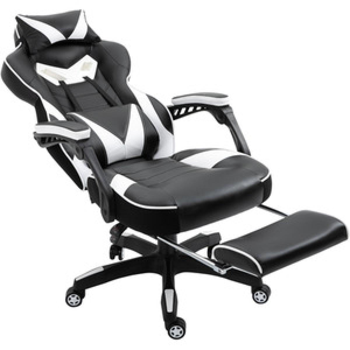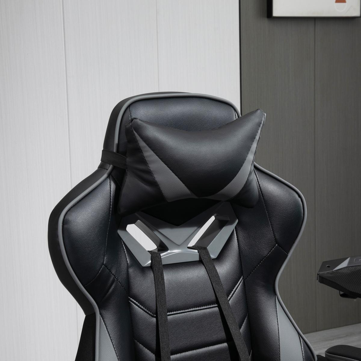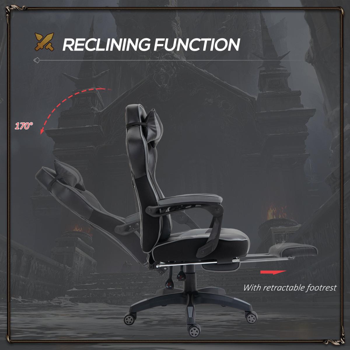 Fulfil your need for some serious style with this gaming chair from Vinsetto. It's fitted with thick foam for comfort and wrapped in black PU leather with cool blue panels. Ergonomic in design, it features a high back, armrests, a five-wheel base and the chair can swivel around 360 degrees. It is also equipped with a manual retracting footrest, which is perfectly paired in sync with the reclining back when you want to take a rest. Whether it's work or play, this chair is the seat to do it all in.