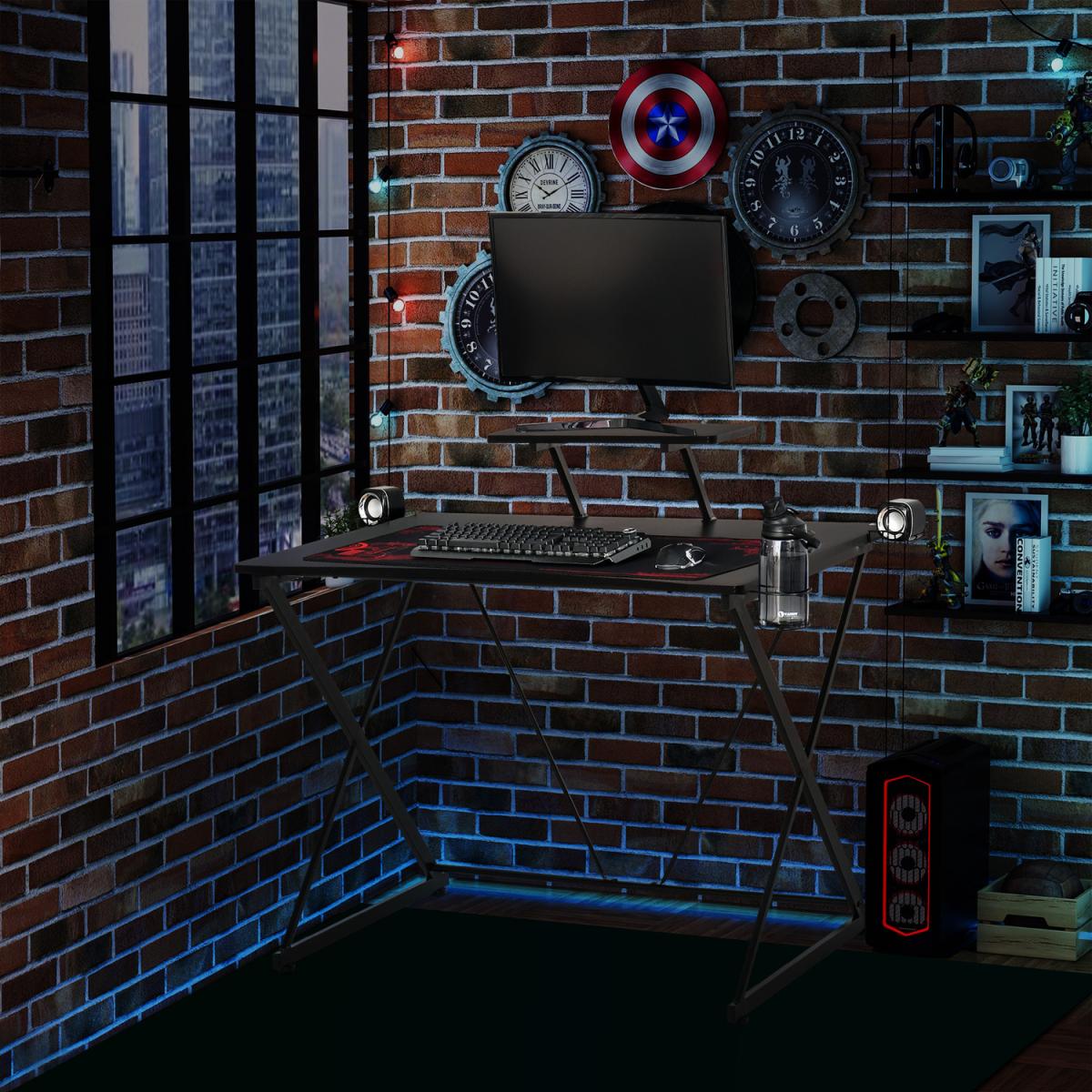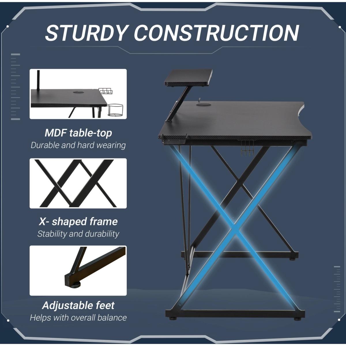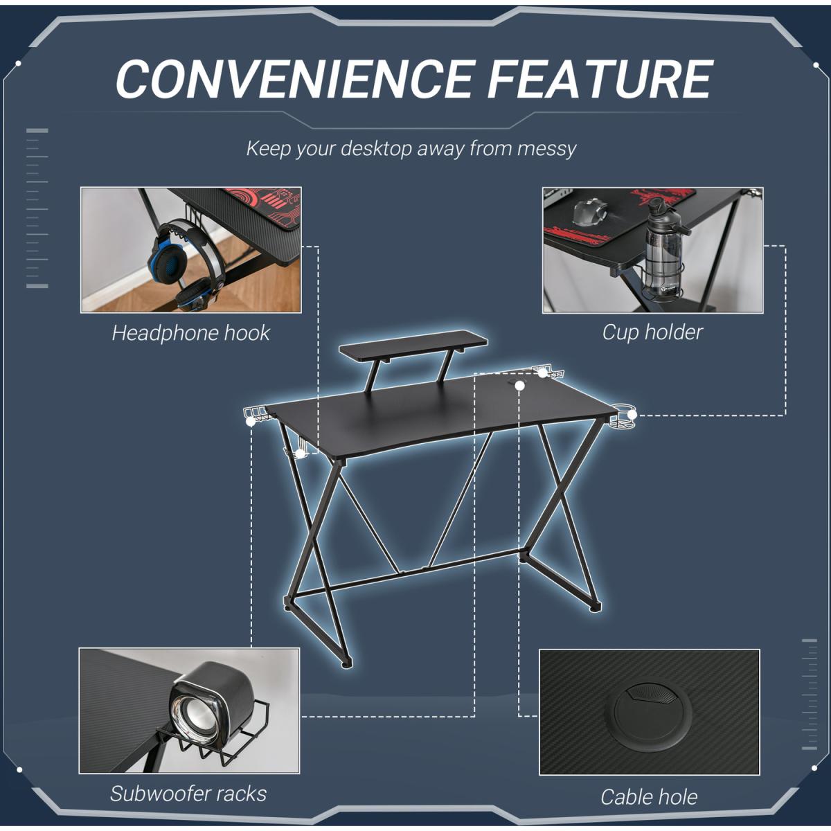 HOMCOM X-shaped gaming desk is specially designed for gamers, it also can be used as a computer desk, home office desk, providing a comfortable gaming and working environment. It features a raised monitor shelf which allows you to see your screen at eye level, preventing stress to the neck when using for prolonged periods. The main desktop is large to give you plenty of room for your keyboard. A modern and stylish design that will bring joy to your working and gaming space.