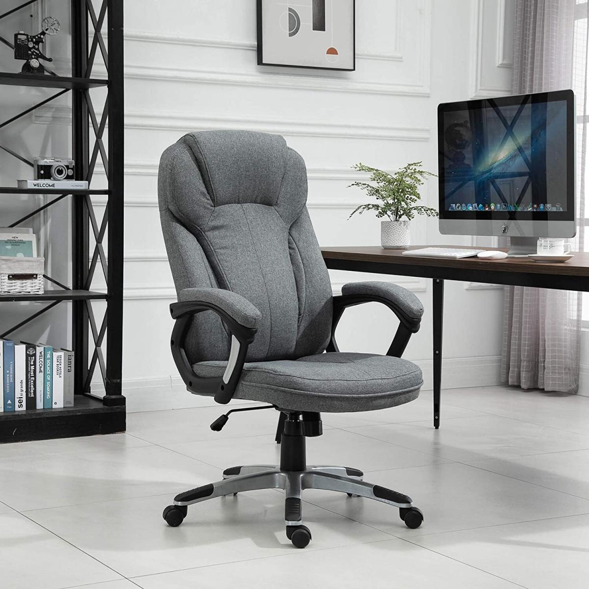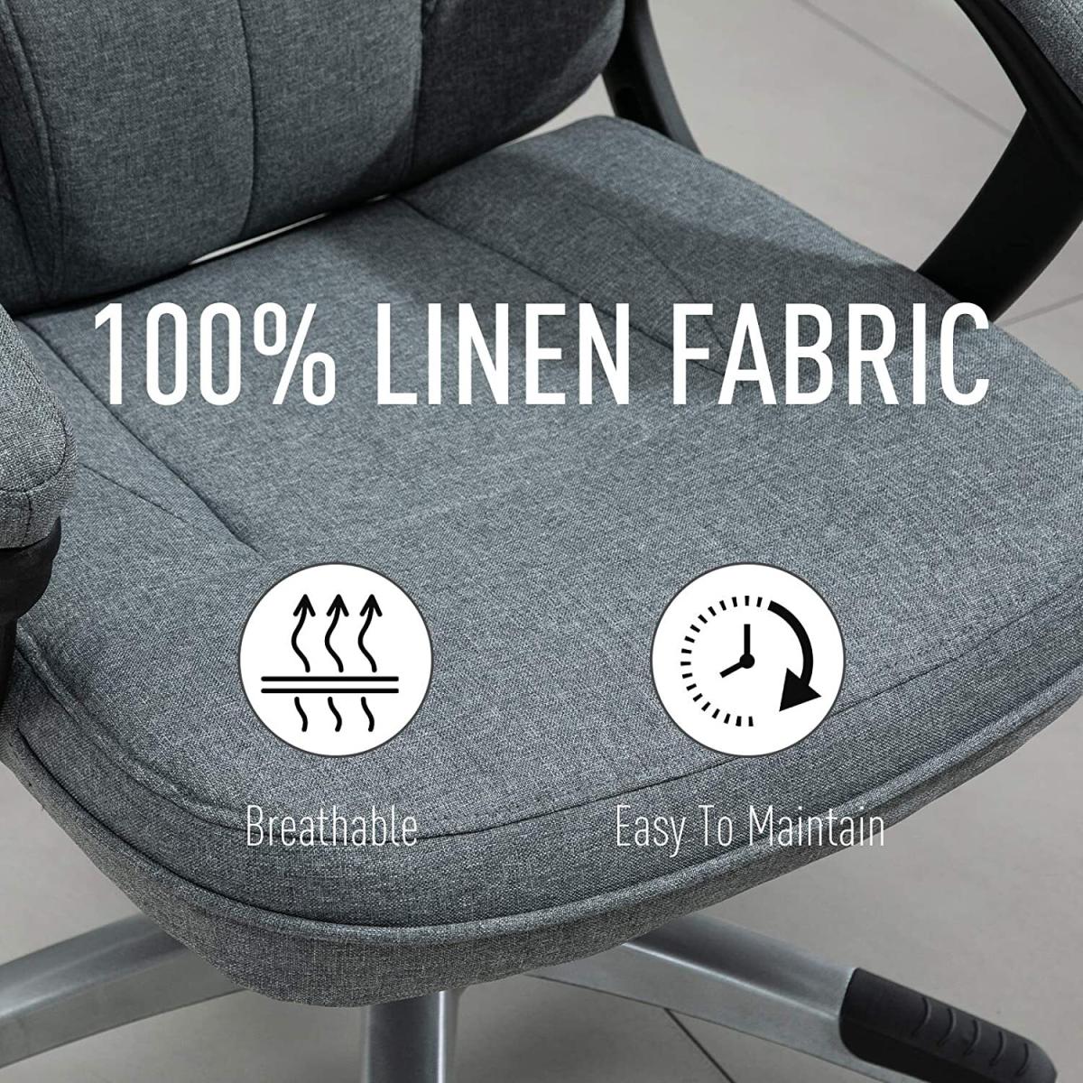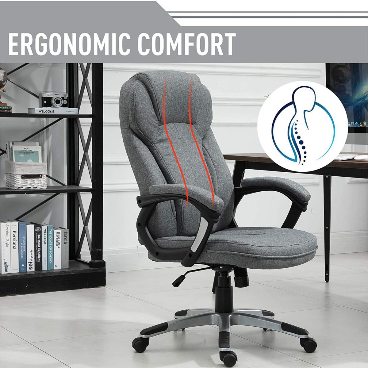 Give yourself a proper place to sit whilst working - choose this office chair from Vinsetto. An ergonomic design to offer your body support as you sit, it's made with a wide seat, high fixed armrests, and a high back, with thick padding all over so you'll be comfortable for long periods. The back tilt is able to be adjusted, as well as the seat height, to set in a position best for you. Fitted with five wheels on the base, paired with the 360 swivelling seats, you can move around freely whilst seated. With smooth linen upholstery to finish, this chair really does look as good as it feels.