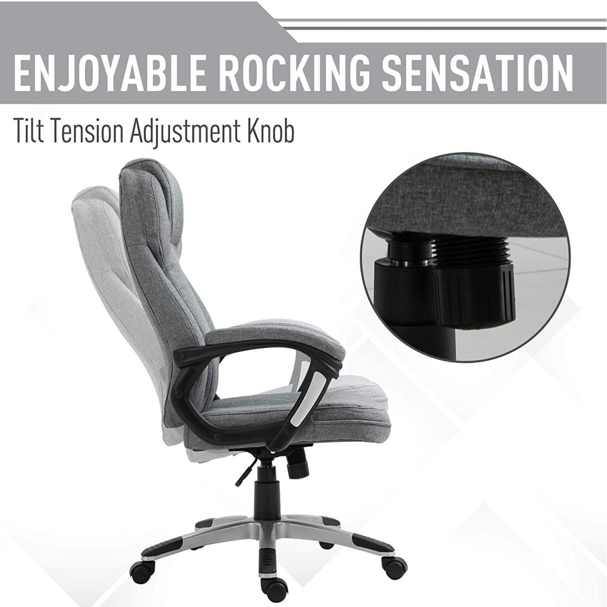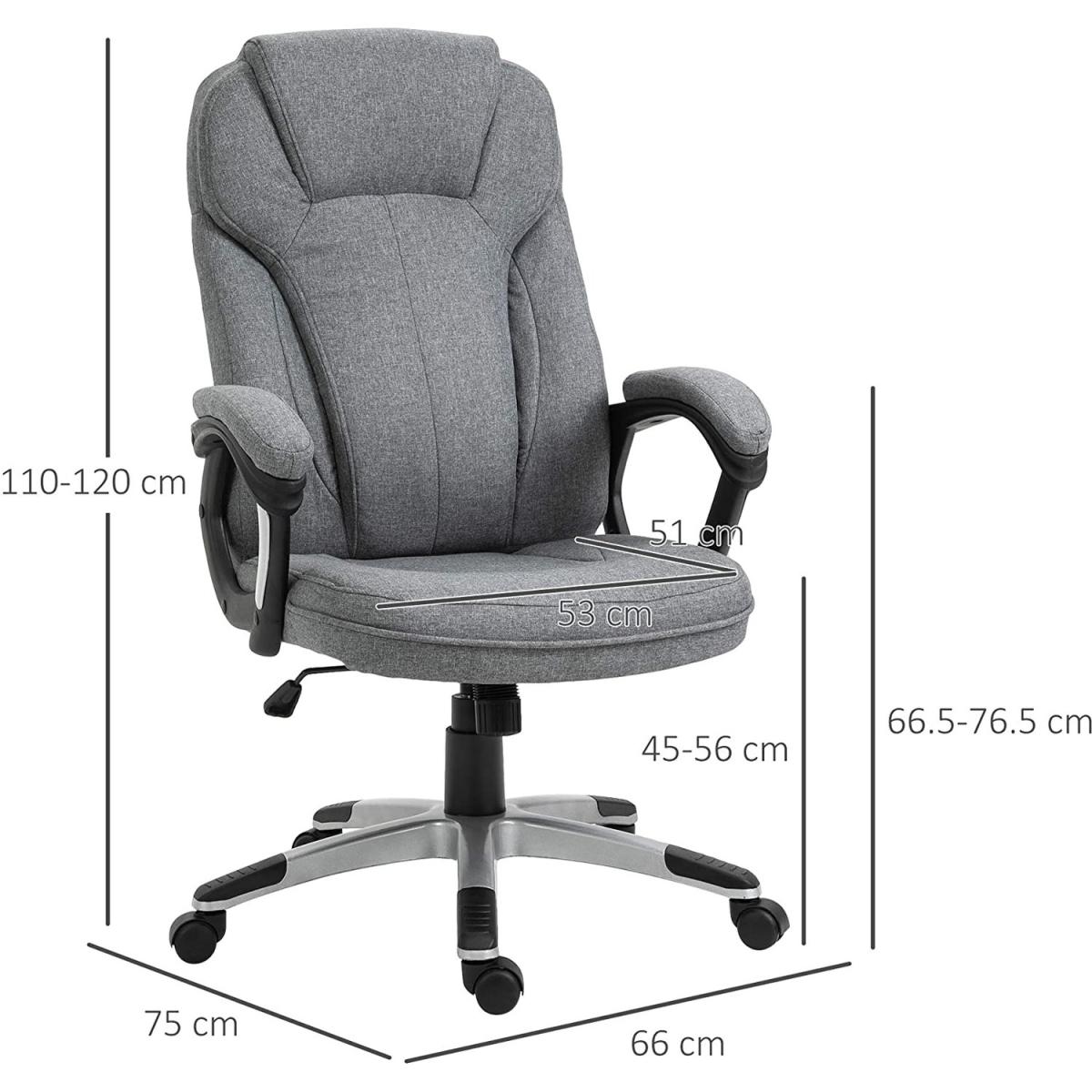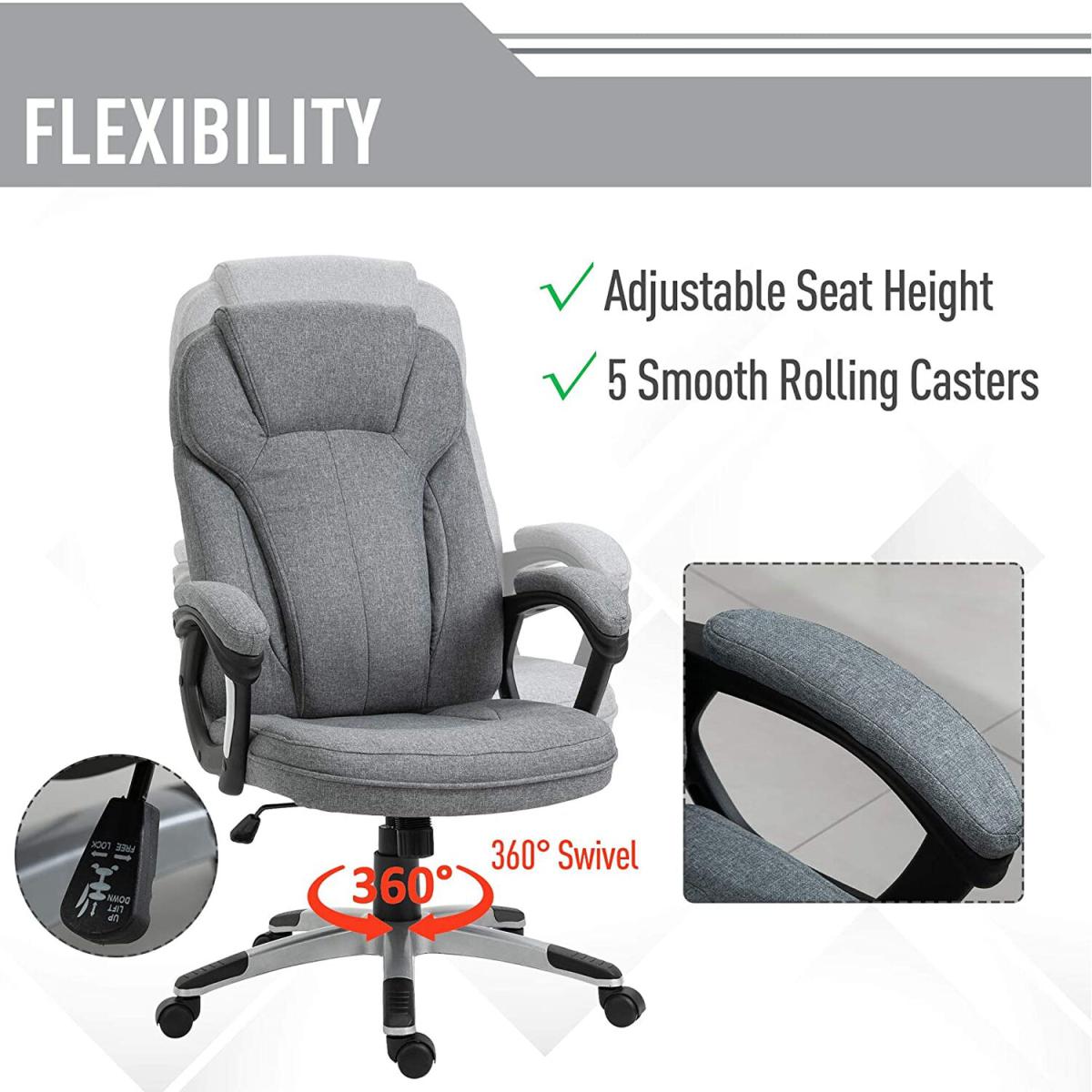 Give yourself a proper place to sit whilst working - choose this office chair from Vinsetto. An ergonomic design to offer your body support as you sit, it's made with a wide seat, high fixed armrests, and a high back, with thick padding all over so you'll be comfortable for long periods. The back tilt is able to be adjusted, as well as the seat height, to set in a position best for you. Fitted with five wheels on the base, paired with the 360 swivelling seats, you can move around freely whilst seated. With smooth linen upholstery to finish, this chair really does look as good as it feels.
