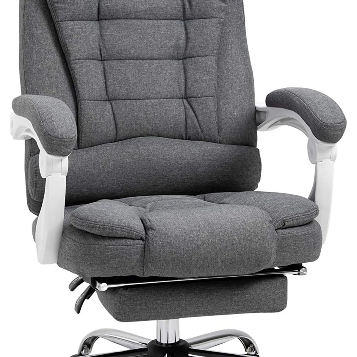 Ergonomic Office Chair with Retractable Footrest - Grey, White