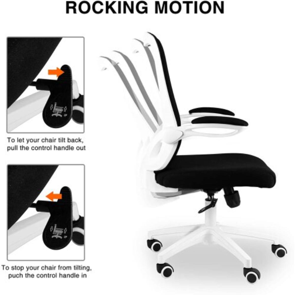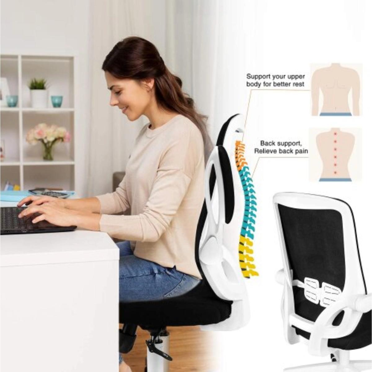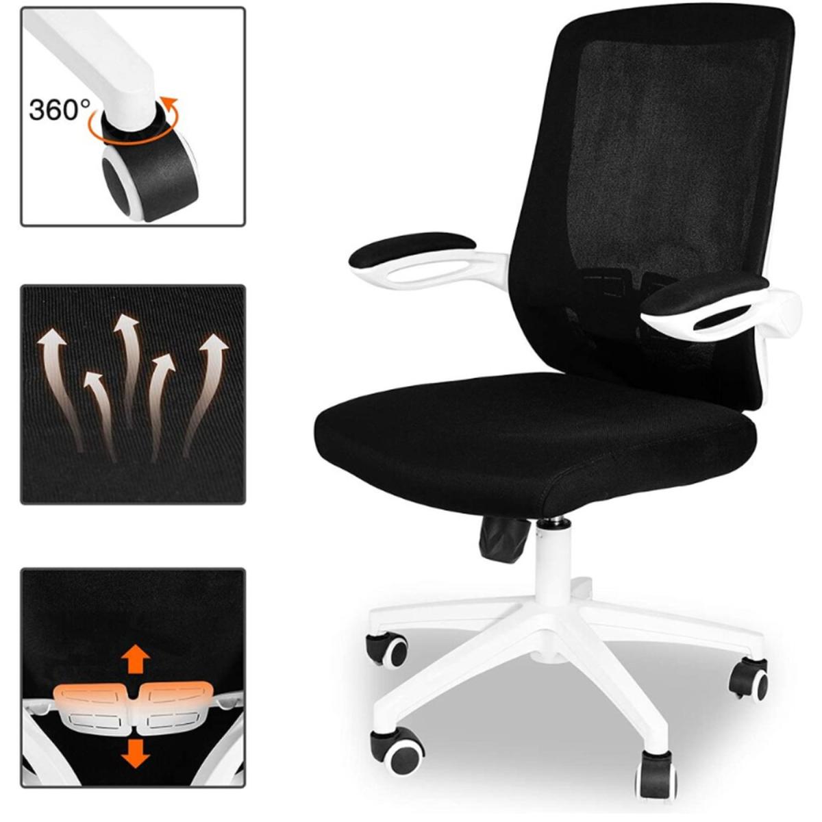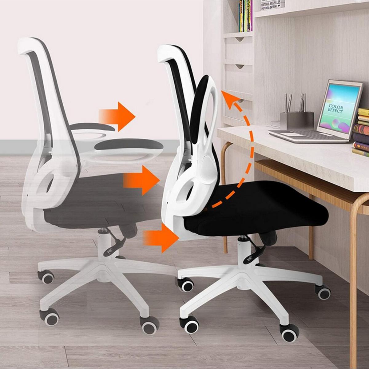 This office chair comes with an SGS certified safe to use gas lift, 10cm lifting range to meet the needs of people of different heights. It also supports rocking motion tilt, the reclining function of 90 to 115 Degrees which allows you to relax yourselves. Most suitable for 150-180cm people with a maximum load of 150kg. This ergonomic desk mesh chair is built with flexible armrests (can be folded up 90 Degrees), which means when you do not want to use them, you can flip the arms up and put the chair under the desk for saving space.