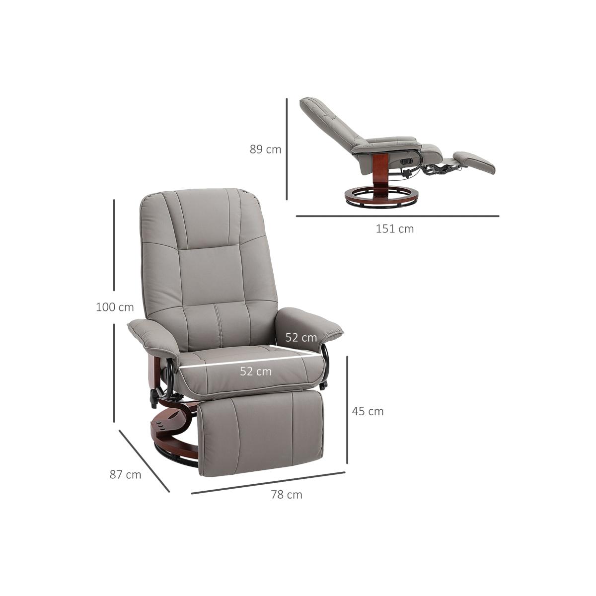 Relaxing after a long and hard day at work has never been so comfortable, thanks to this HOMCOM recliner armchair. A full 360 swivel base for full mobility, made from wood to keep you supported and round in size for balance. Padded all over to sink into, with a reclining back and manual footrest to allow you to truly relax into. Completed with soft faux leather upholstery, beautiful and stylish.