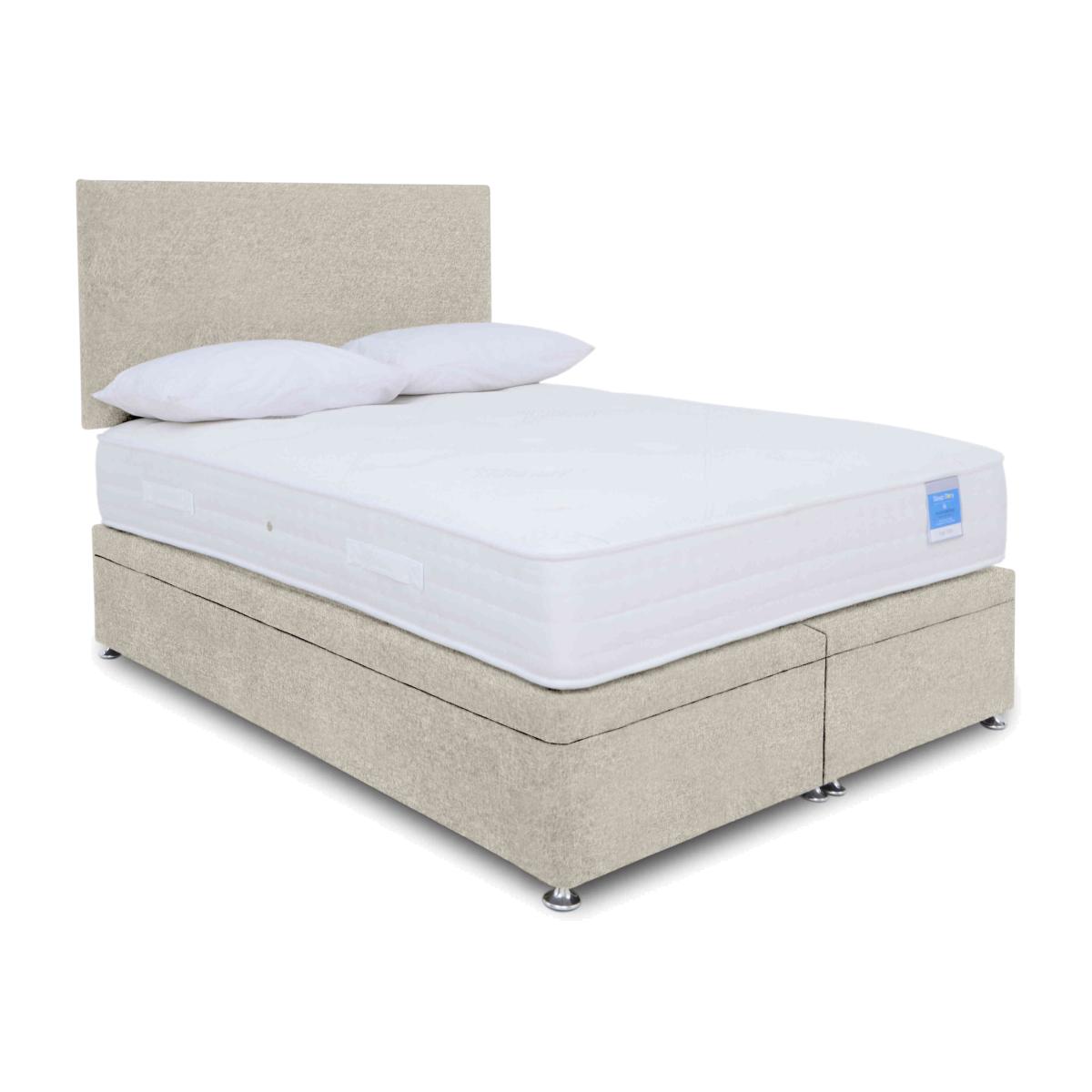 With the beds and mattresses in the Sleep Story Ergosense range, you’ll experience total comfort and support. The medium-feel mattresses in the collection have 1000 individually pocketed springs in king size that ensure correct spinal alignment while you sleep while layers of medical-grade Ergosense foam provide body-responsive comfort. The range also includes a wide choice of divan sets with beautifully upholstered divan bases that come with space-saving drawer and ottoman storage options including an electric-powered ottoman divan base. The great-value Sleep Story Ergosense range is made in Britain by Highgrove exclusively for Furniture Village. This ottoman divan set is electric-powered for easy access to the storage compartment and comes with a fabulous medium-feel pocket spring mattress. Effortless comfort at a great-value price. Why you'll love it Electric ottoman divan set includes a luxurious tufted mattress with a high-performance foam layer. Tradition meets technology at a great-value price. The ultra-sensitive Ergosense foam layer reacts immediately to body weight and shape. Relieves pressure and improves blood circulation. Helps to minimise restless sleep for more refreshed days. AdvantEdge® pocket spring system has 1000 springs in king size. It’s designed to offer total body support across the entire sleep surface. Ensures correct spinal alignment for better quality of sleep. DynamicEdge active side support maximises the sleep surface and prevents roll off. Breathable stretch fabric cover. Hypoallergenic. Platform-top base with spacious end-opening ottoman storage. Electric powered for effortless access to the storage compartment. Available in a wide selection of stylish upholstery fabrics. Made in the UK by Highgrove and exclusive to Furniture Village. This electric ottoman divan set is part of the Sleep Story Ergosense range. Shop the Sleep Story Ergosense range for mattresses, divan sets, electric ottoman beds and more. What you need to know Headboard is an optional extra. Mattress type: Pocket spring. Weight:Small single 16.5 kg, single 19.8 kg, small double 26.4 kg, double 29.7 kg, king 33 kg and super king 39.6 kg. Depth: 25 cm. Firmness: Medium. Springs: 1000 pocket springs in king size. Pillow top: No. Fillings: Medical-grade foam and polyester Cover:Stretch fabric cover. Requires turning: Yes. Base type: Platform top with electric-powered end-opening ottoman storage. Sizes: Small single, single, small double, double, king and super king. Mattress care:Air for 4 hours before using to remove any odour. Allow at least 4 hours for springs to settle and for mattress to attain its full size. Indentations caused by settlement of fillings or body weight are normal and are not considered defects. If used on a slatted bed frame, the space between slats must be no wider than 7.5 cm. Spaces wider than this may cause excess dipping of the mattress and invalidate the guarantee. Always use a mattress protector. Rotate regularly. Divan base care: Clean upholstery weekly using a soft brush or vacuum with the curtain attachment. Professional cleaning advised for oil- and grease-based stains. Be careful care when opening and closing the ottoman base. The ottoman base is powered by mains electricity. Please ensure that you will be able to connect it to a power source before ordering. Ordering a small double, double, king or super king size? Your divan base will be supplied in two halves for easier access.