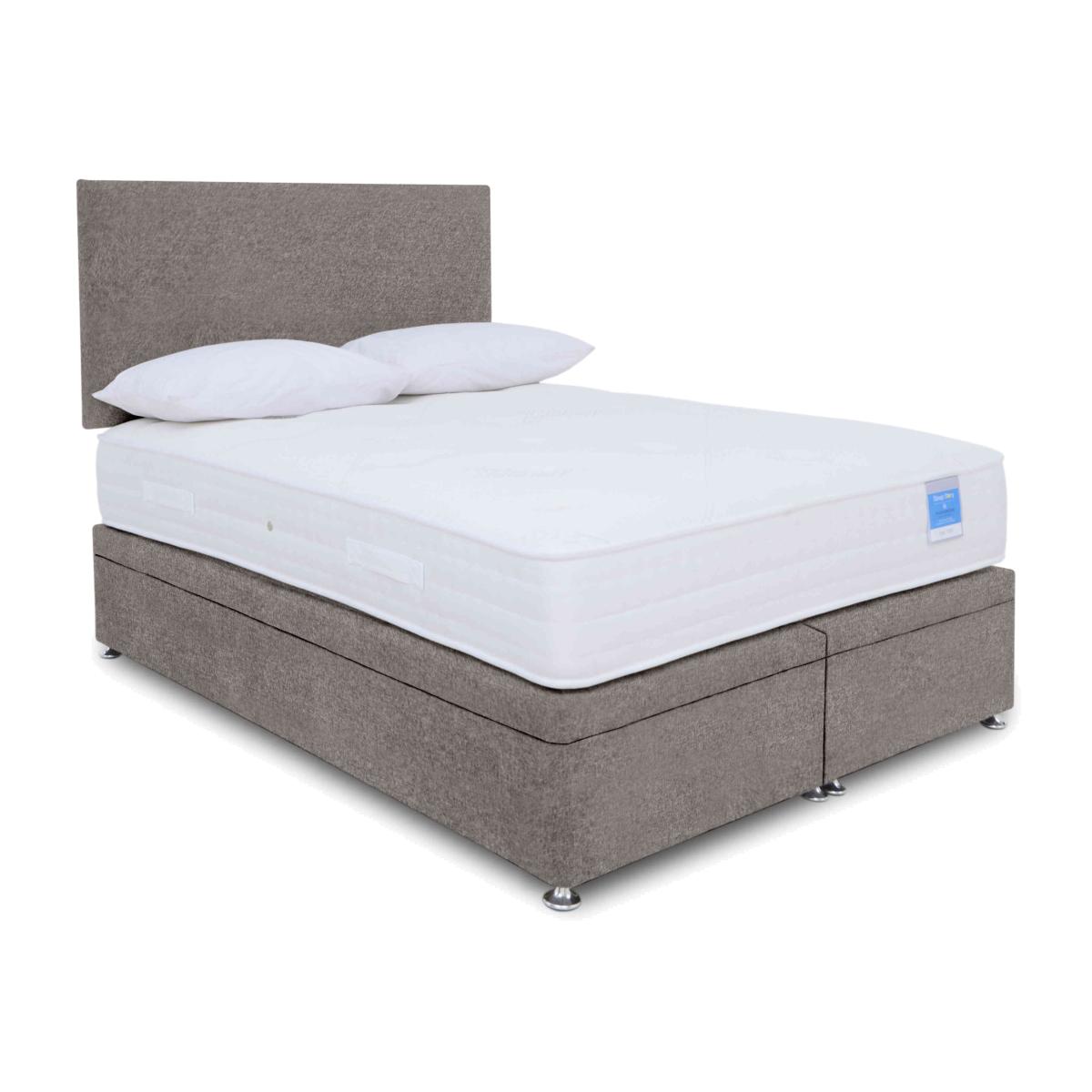 With the beds and mattresses in the Sleep Story Ergosense range, you’ll experience total comfort and support. The medium-feel mattresses in the collection have 1000 individually pocketed springs in king size that ensure correct spinal alignment while you sleep while layers of medical-grade Ergosense foam provide body-responsive comfort. The range also includes a wide choice of divan sets with beautifully upholstered divan bases that come with space-saving drawer and ottoman storage options including an electric-powered ottoman divan base. The great-value Sleep Story Ergosense range is made in Britain by Highgrove exclusively for Furniture Village. This ottoman divan set is electric-powered for easy access to the storage compartment and comes with a fabulous medium-feel pocket spring mattress. Effortless comfort at a great-value price. Why you'll love it Electric ottoman divan set includes a luxurious tufted mattress with a high-performance foam layer. Tradition meets technology at a great-value price. The ultra-sensitive Ergosense foam layer reacts immediately to body weight and shape. Relieves pressure and improves blood circulation. Helps to minimise restless sleep for more refreshed days. AdvantEdge® pocket spring system has 1000 springs in king size. It’s designed to offer total body support across the entire sleep surface. Ensures correct spinal alignment for better quality of sleep. DynamicEdge active side support maximises the sleep surface and prevents roll off. Breathable stretch fabric cover. Hypoallergenic. Platform-top base with spacious end-opening ottoman storage. Electric powered for effortless access to the storage compartment. Available in a wide selection of stylish upholstery fabrics. Made in the UK by Highgrove and exclusive to Furniture Village. This electric ottoman divan set is part of the Sleep Story Ergosense range. Shop the Sleep Story Ergosense range for mattresses, divan sets, electric ottoman beds and more. What you need to know Headboard is an optional extra. Mattress type: Pocket spring. Weight:Small single 16.5 kg, single 19.8 kg, small double 26.4 kg, double 29.7 kg, king 33 kg and super king 39.6 kg. Depth: 25 cm. Firmness: Medium. Springs: 1000 pocket springs in king size. Pillow top: No. Fillings: Medical-grade foam and polyester Cover:Stretch fabric cover. Requires turning: Yes. Base type: Platform top with electric-powered end-opening ottoman storage. Sizes: Small single, single, small double, double, king and super king. Mattress care:Air for 4 hours before using to remove any odour. Allow at least 4 hours for springs to settle and for mattress to attain its full size. Indentations caused by settlement of fillings or body weight are normal and are not considered defects. If used on a slatted bed frame, the space between slats must be no wider than 7.5 cm. Spaces wider than this may cause excess dipping of the mattress and invalidate the guarantee. Always use a mattress protector. Rotate regularly. Divan base care: Clean upholstery weekly using a soft brush or vacuum with the curtain attachment. Professional cleaning advised for oil- and grease-based stains. Be careful care when opening and closing the ottoman base. The ottoman base is powered by mains electricity. Please ensure that you will be able to connect it to a power source before ordering. Ordering a small double, double, king or super king size? Your divan base will be supplied in two halves for easier access.