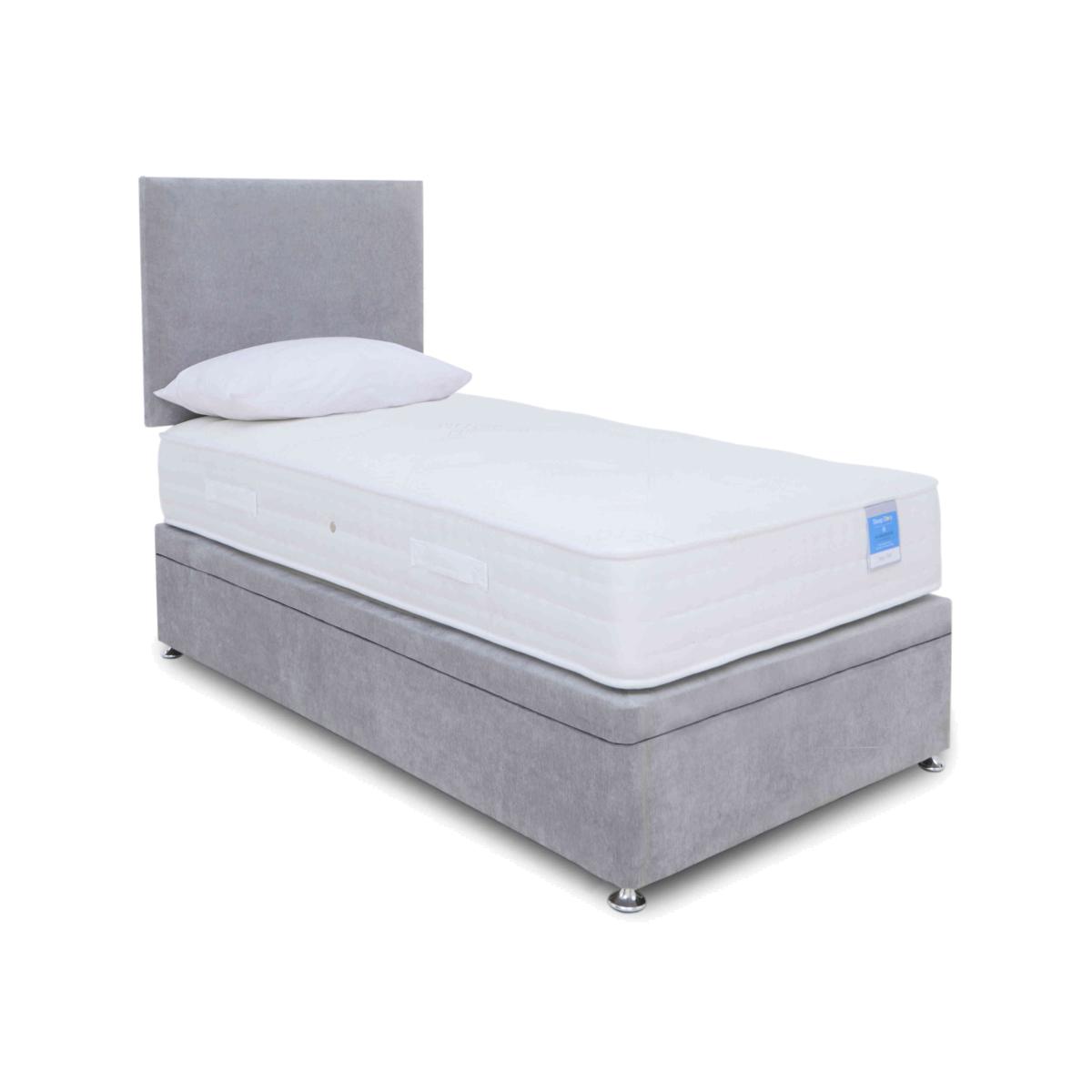 With the beds and mattresses in the Sleep Story Ergosense range, you’ll experience total comfort and support. The medium-feel mattresses in the collection have 1000 individually pocketed springs in king size that ensure correct spinal alignment while you sleep while layers of medical-grade Ergosense foam provide body-responsive comfort. The range also includes a wide choice of divan sets with beautifully upholstered divan bases that come with space-saving drawer and ottoman storage options including an electric-powered ottoman divan base. The great-value Sleep Story Ergosense range is made in Britain by Highgrove exclusively for Furniture Village. This ottoman divan set is electric-powered for easy access to the storage compartment and comes with a fabulous medium-feel pocket spring mattress. Effortless comfort at a great-value price. Why you'll love it Electric ottoman divan set includes a luxurious tufted mattress with a high-performance foam layer. Tradition meets technology at a great-value price. The ultra-sensitive Ergosense foam layer reacts immediately to body weight and shape. Relieves pressure and improves blood circulation. Helps to minimise restless sleep for more refreshed days. AdvantEdge® pocket spring system has 1000 springs in king size. It’s designed to offer total body support across the entire sleep surface. Ensures correct spinal alignment for better quality of sleep. DynamicEdge active side support maximises the sleep surface and prevents roll off. Breathable stretch fabric cover. Hypoallergenic. Platform-top base with spacious end-opening ottoman storage. Electric powered for effortless access to the storage compartment. Available in a wide selection of stylish upholstery fabrics. Made in the UK by Highgrove and exclusive to Furniture Village. This electric ottoman divan set is part of the Sleep Story Ergosense range. Shop the Sleep Story Ergosense range for mattresses, divan sets, electric ottoman beds and more. What you need to know Headboard is an optional extra. Mattress type: Pocket spring. Weight:Small single 16.5 kg, single 19.8 kg, small double 26.4 kg, double 29.7 kg, king 33 kg and super king 39.6 kg. Depth: 25 cm. Firmness: Medium. Springs: 1000 pocket springs in king size. Pillow top: No. Fillings: Medical-grade foam and polyester Cover:Stretch fabric cover. Requires turning: Yes. Base type: Platform top with electric-powered end-opening ottoman storage. Sizes: Small single, single, small double, double, king and super king. Mattress care:Air for 4 hours before using to remove any odour. Allow at least 4 hours for springs to settle and for mattress to attain its full size. Indentations caused by settlement of fillings or body weight are normal and are not considered defects. If used on a slatted bed frame, the space between slats must be no wider than 7.5 cm. Spaces wider than this may cause excess dipping of the mattress and invalidate the guarantee. Always use a mattress protector. Rotate regularly. Divan base care: Clean upholstery weekly using a soft brush or vacuum with the curtain attachment. Professional cleaning advised for oil- and grease-based stains. Be careful care when opening and closing the ottoman base. The ottoman base is powered by mains electricity. Please ensure that you will be able to connect it to a power source before ordering. Ordering a small double, double, king or super king size? Your divan base will be supplied in two halves for easier access.