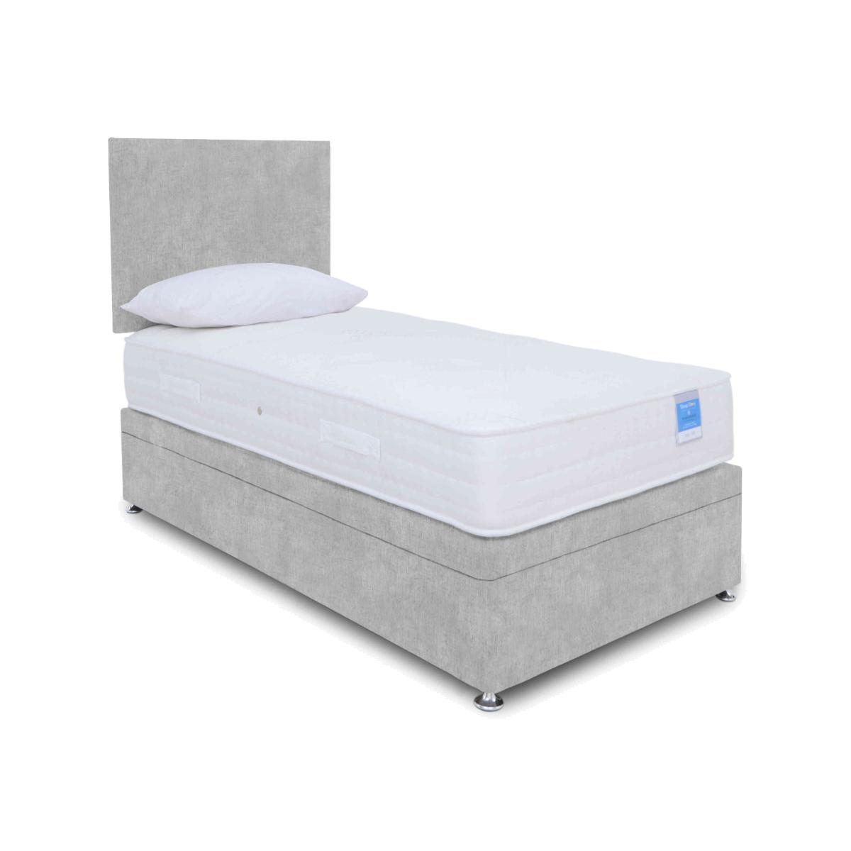 With the beds and mattresses in the Sleep Story Ergosense range, you’ll experience total comfort and support. The medium-feel mattresses in the collection have 1000 individually pocketed springs in king size that ensure correct spinal alignment while you sleep while layers of medical-grade Ergosense foam provide body-responsive comfort. The range also includes a wide choice of divan sets with beautifully upholstered divan bases that come with space-saving drawer and ottoman storage options including an electric-powered ottoman divan base. The great-value Sleep Story Ergosense range is made in Britain by Highgrove exclusively for Furniture Village. This ottoman divan set is electric-powered for easy access to the storage compartment and comes with a fabulous medium-feel pocket spring mattress. Effortless comfort at a great-value price. Why you'll love it Electric ottoman divan set includes a luxurious tufted mattress with a high-performance foam layer. Tradition meets technology at a great-value price. The ultra-sensitive Ergosense foam layer reacts immediately to body weight and shape. Relieves pressure and improves blood circulation. Helps to minimise restless sleep for more refreshed days. AdvantEdge® pocket spring system has 1000 springs in king size. It’s designed to offer total body support across the entire sleep surface. Ensures correct spinal alignment for better quality of sleep. DynamicEdge active side support maximises the sleep surface and prevents roll off. Breathable stretch fabric cover. Hypoallergenic. Platform-top base with spacious end-opening ottoman storage. Electric powered for effortless access to the storage compartment. Available in a wide selection of stylish upholstery fabrics. Made in the UK by Highgrove and exclusive to Furniture Village. This electric ottoman divan set is part of the Sleep Story Ergosense range. Shop the Sleep Story Ergosense range for mattresses, divan sets, electric ottoman beds and more. What you need to know Headboard is an optional extra. Mattress type: Pocket spring. Weight:Small single 16.5 kg, single 19.8 kg, small double 26.4 kg, double 29.7 kg, king 33 kg and super king 39.6 kg. Depth: 25 cm. Firmness: Medium. Springs: 1000 pocket springs in king size. Pillow top: No. Fillings: Medical-grade foam and polyester Cover:Stretch fabric cover. Requires turning: Yes. Base type: Platform top with electric-powered end-opening ottoman storage. Sizes: Small single, single, small double, double, king and super king. Mattress care:Air for 4 hours before using to remove any odour. Allow at least 4 hours for springs to settle and for mattress to attain its full size. Indentations caused by settlement of fillings or body weight are normal and are not considered defects. If used on a slatted bed frame, the space between slats must be no wider than 7.5 cm. Spaces wider than this may cause excess dipping of the mattress and invalidate the guarantee. Always use a mattress protector. Rotate regularly. Divan base care: Clean upholstery weekly using a soft brush or vacuum with the curtain attachment. Professional cleaning advised for oil- and grease-based stains. Be careful care when opening and closing the ottoman base. The ottoman base is powered by mains electricity. Please ensure that you will be able to connect it to a power source before ordering. Ordering a small double, double, king or super king size? Your divan base will be supplied in two halves for easier access.