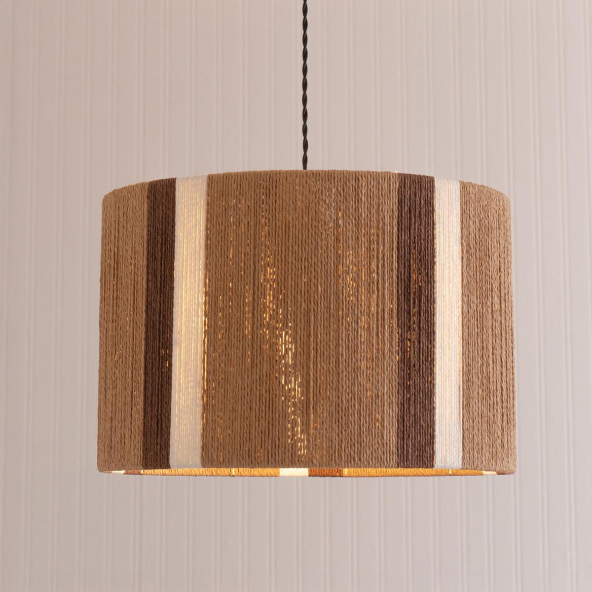 Erica Stripe Pattern Rattan Wicker Drum Ceiling Lamp Shade and LED Bulb - Natural
