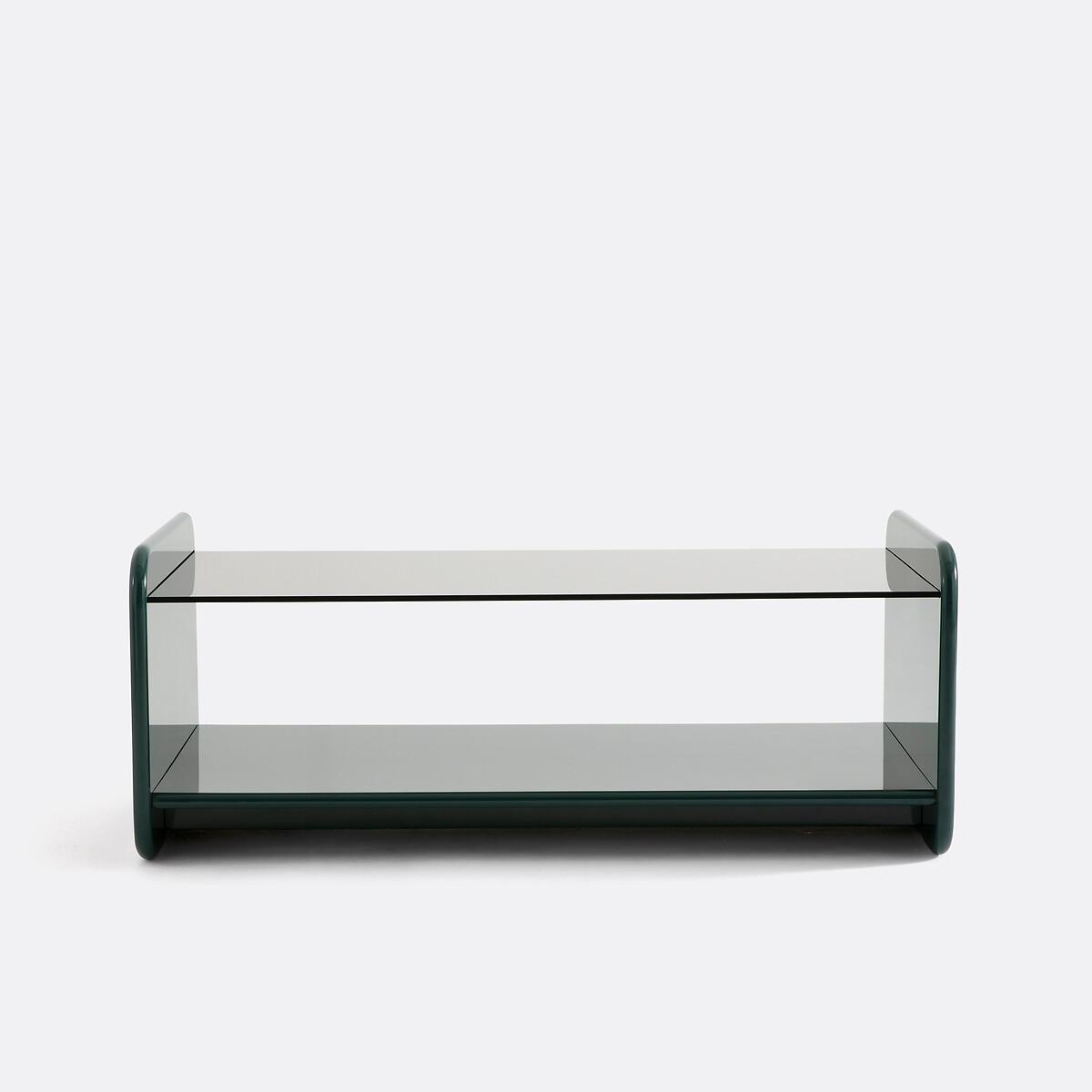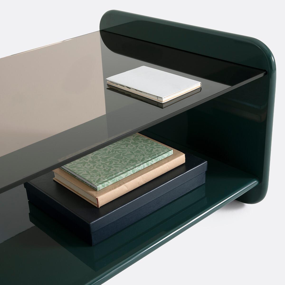 Straight lines. Assembly kit. Mix of materials. The Ericson Coffee Table takes its inspiration from 70's modernism : It's the colourful, stylish piece for your living room. Designed by La Redoute Intérieurs. Product Details • Rectangular table top in smoked tempered glass • Green lacquered MDF frame and legs, polyurethane finish • People required for assembly: 2. Quality Info • This coffee table is in tempered glass for your safety. Care advice • To protect your coffee table, consider trivets, coasters and placemats. Dimensions • Width: 105cm • Height: 41cm • Depth: 57.5cm • Weight: 31.1kg • This product requires assembly. • WOOD FROM MORE SUSTAINABLY MANAGED FORESTS AND CONTROLLED SOURCES. FSC® Mix wood contains at least 70% FSC® certified and/or recycled wood, the remainder being FSC® controlled wood. Dimensions and weight of parcel1 parcel • W118 x H14.5 x D71.5cm. 35.3kg