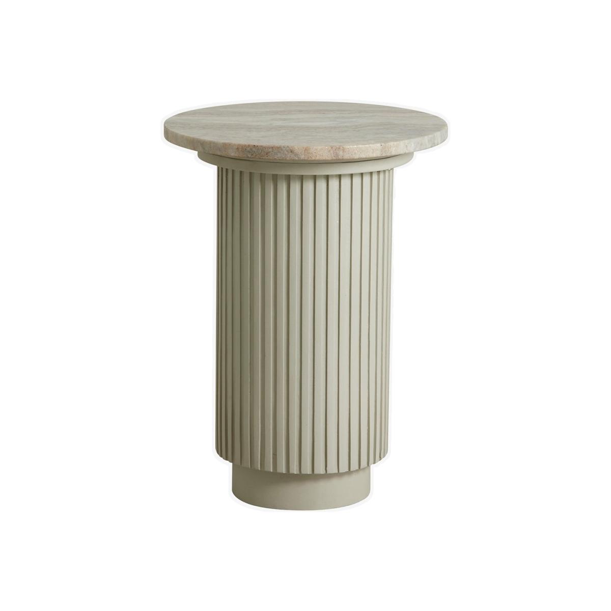 I love this round side table for its versatile design and tactile ribbed texture, which adds visual interest without overwhelming a space. It works particularly well in both contemporary and eclectic interiors, complementing a range of colour palettes and styles. Practical styling tips include using it as a nightstand or a statement piece in a living room corner, accessorised with a simple lamp, a stack of books, or a small decorative object. Its neutral tone makes it easy to mix and match with other furniture and accessories, making it an adaptable choice for many settings.