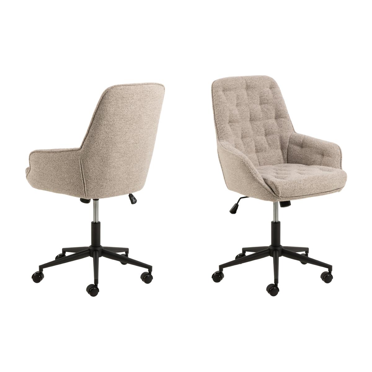 I love this beige swivel desk chair for its versatile, understated style that effortlessly blends into both modern and traditional workspaces. Its neutral tone makes it a practical choice for colour-coordinating with a range of interiors, from neutral-toned studies to more vibrant home offices. The tufted detail and soft fabric add a touch of comfort and sophistication, making it suitable not just for work but also for a reading nook or informal meeting space. To style it effectively, consider pairing with a wooden or glass desk for a contemporary look, and add a cosy throw or decorative cushion for a personalised touch. Its clean, streamlined shape ensures it works well in a variety of settings without overpowering the room’s decor.