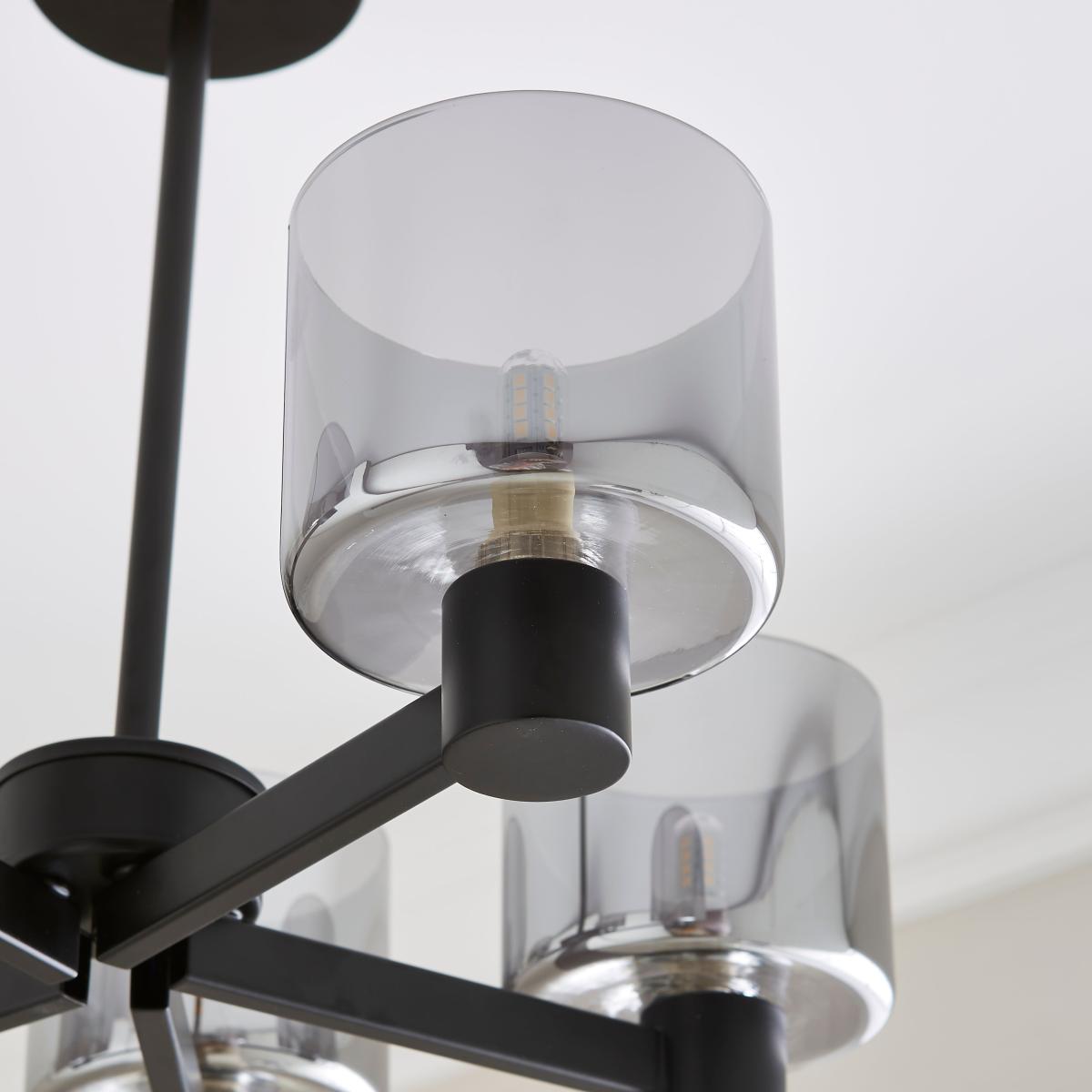 Featuring a modern luxe design, this light is ideal for adding a touch of contemporary style to any room. With a black plated finish and five smoked glass shades, this semi flush ceiling light is not only stylish but modern. This light is dimmable compatible and is perfect for use with G9 LED lamps.