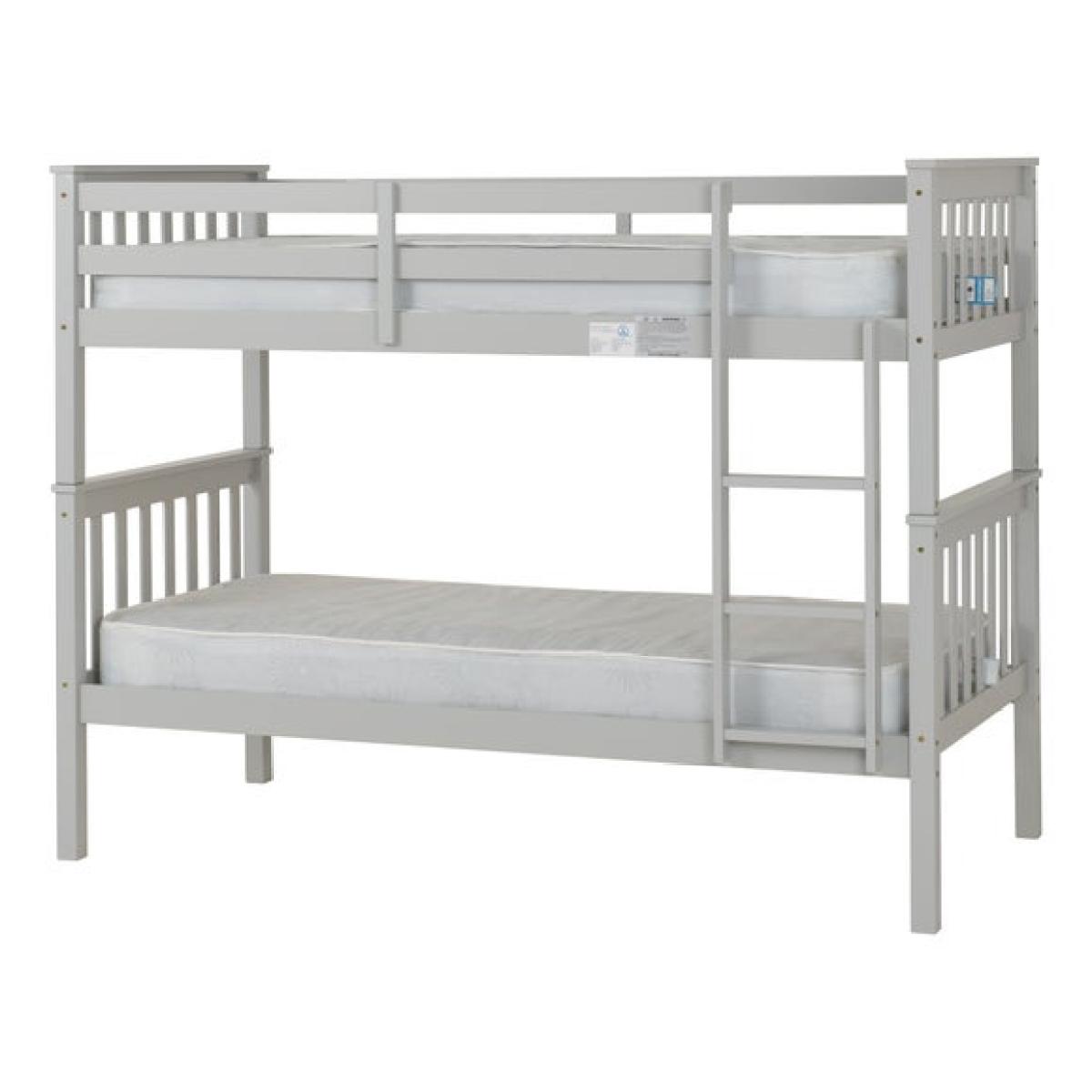 * Space-saving bunk bed design * High side rails for added safety * Fixed ladder for secure access * Supportive slats on both bunks The Erin Bunk Bed Frame is a smart solution for busy households. Its classic design and soft finish blend easily with a range of bedroom styles, making it a great fit for growing families or guest rooms. The top bunk features high side rails for added peace of mind, while the fixed ladder offers secure access. Both bunks include supportive slats to help keep mattresses comfortable and well-ventilated. When the time comes for a change, the frame can be separated into two single beds, giving you more flexibility as needs evolve. A practical choice for siblings sharing a room or hosting sleepovers.