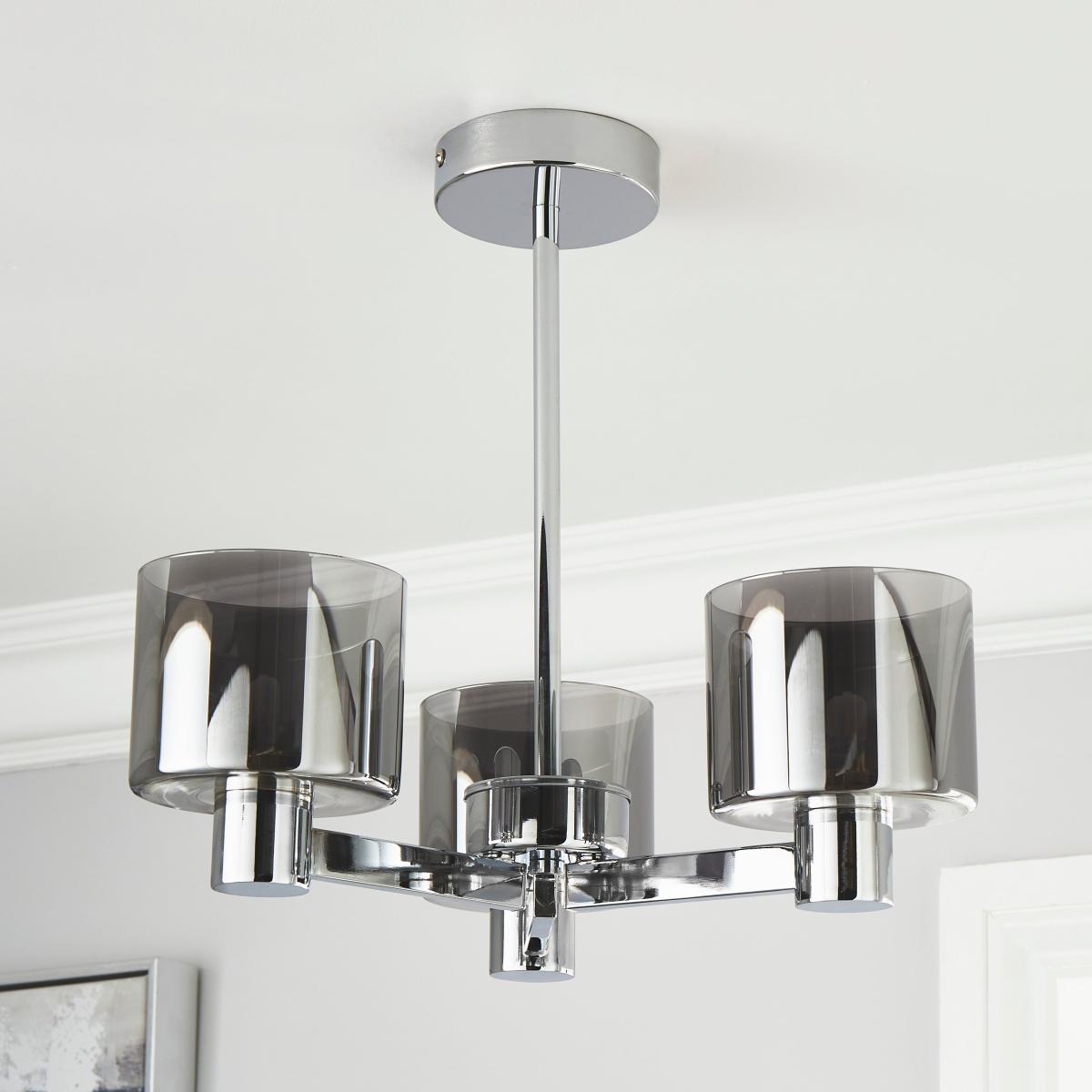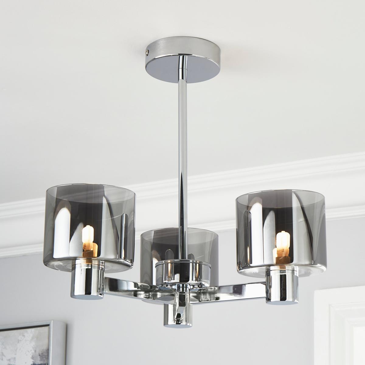 Featuring a modern luxe design, this light is ideal for adding a touch of contemporary style to any room. With a chrome plated finish and three smoked glass shades, this semi flush ceiling light is not only stylish but modern. This light is dimmable compatible and is perfect for use with G9 LED lamps.