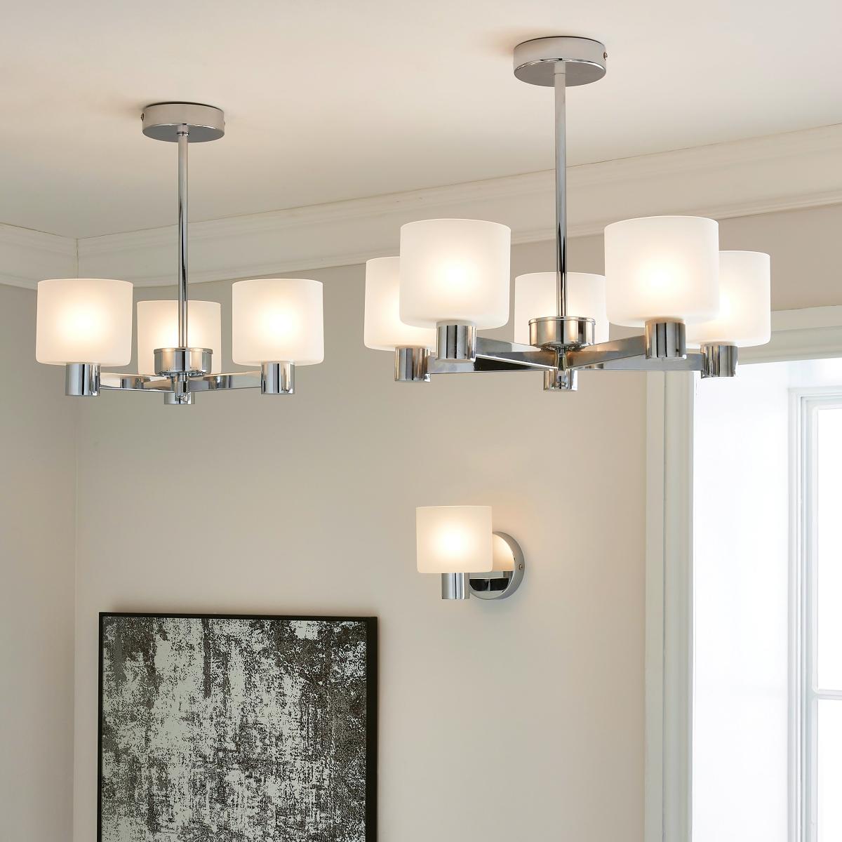 Featuring a modern luxe design, this 3 light ceiling fitting is ideal for adding a touch of contemporary style to any room. With a chrome plated finish and three frosted glass shades, this semi flush ceiling light is not only stylish but modern. This light is dimmable compatible and is perfect for use with G9 LED lamps. Good things come to those who coordinate, so why not pair this ceiling fitting with the matching wall light available to purchase separately?