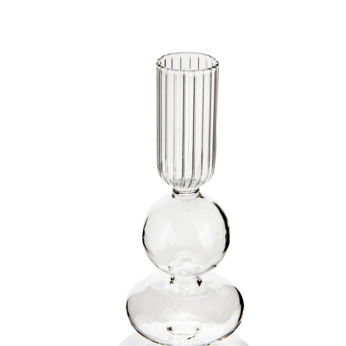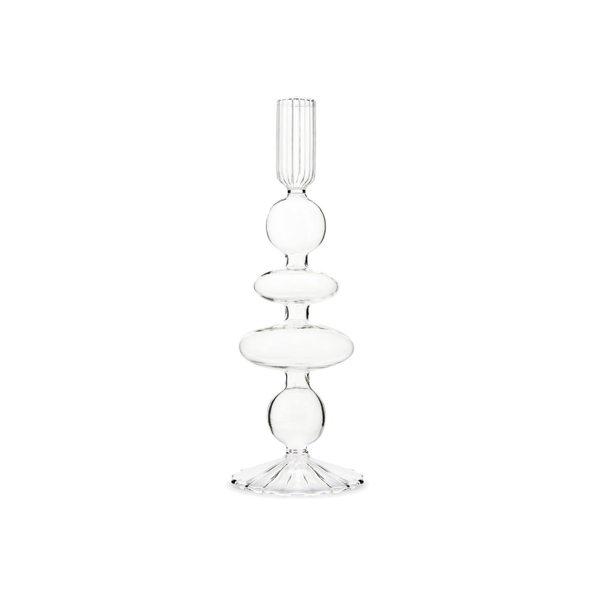 I love this candle holder for its sculptural, modern aesthetic, which brings a clean and understated elegance to any space. It works particularly well in contemporary interiors, minimalist schemes, or even as a striking contrast piece in more eclectic rooms. Practical styling tips include pairing it with simple candles to emphasise its shape or grouping several for a statement display on a sideboard or console. It’s versatile enough to work in living rooms, dining areas, or bathrooms, adding a touch of sophistication without overwhelming the decor. Its transparent glass also means it complements a wide colour palette, making it a flexible piece for various interior styles.