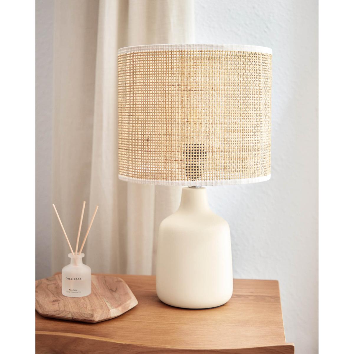 This lamp is a great choice for adding a touch of natural texture and subtle elegance to a variety of interiors. I love how the white ceramic base combined with the bamboo shade creates a fresh, neutral look that works particularly well in Scandinavian, boho, or coastal schemes. For styling, try placing it on bedside tables, sideboards, or open shelving to bring in a calm, organic vibe. It’s versatile enough to blend with other neutral tones or natural materials like linen, rattan, or wood, making it an easy addition to both modern and relaxed, eclectic spaces. Practical tip: pair it with warm LED bulbs to enhance the cozy, inviting atmosphere in your room.