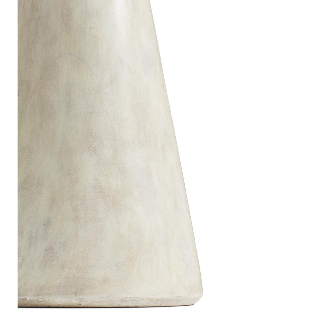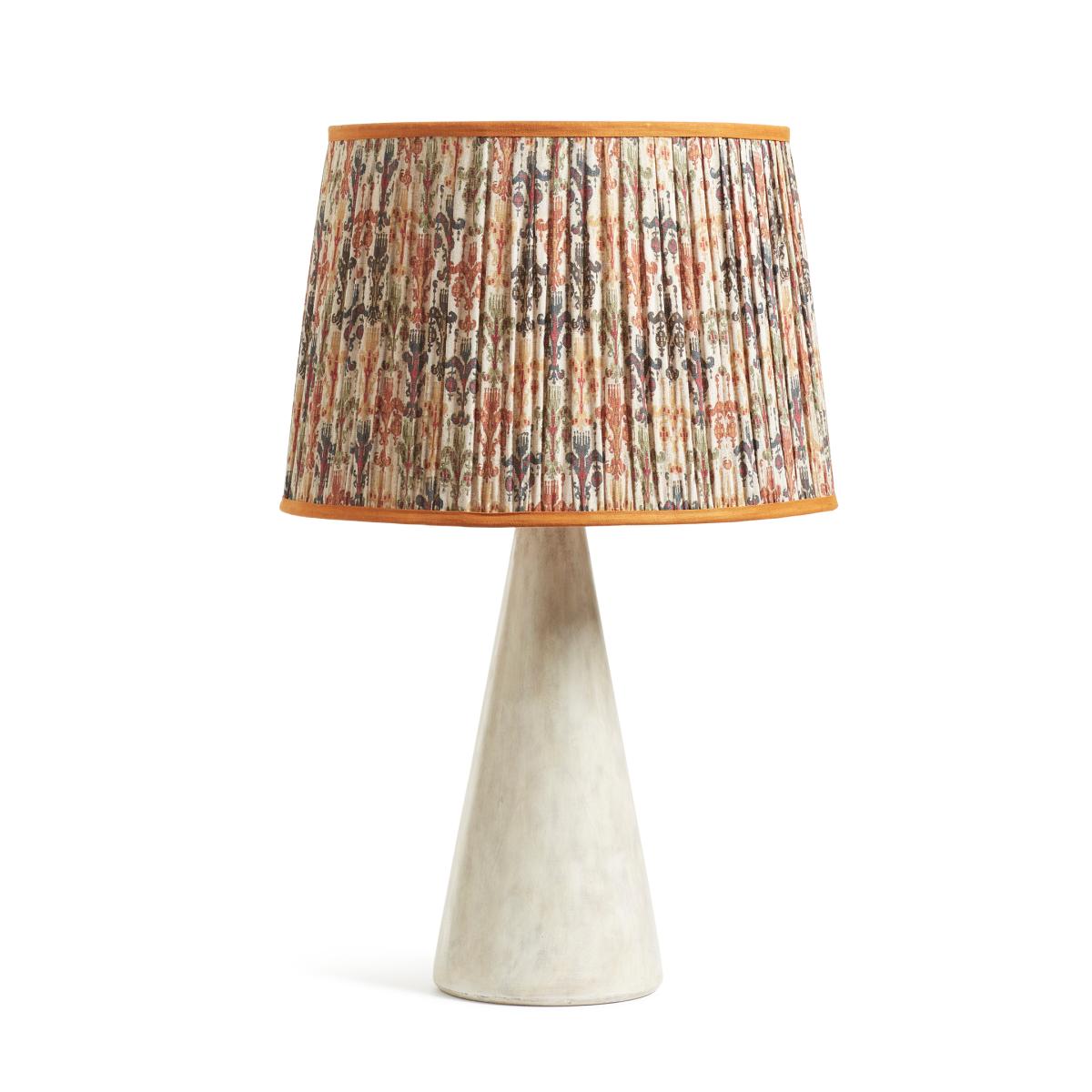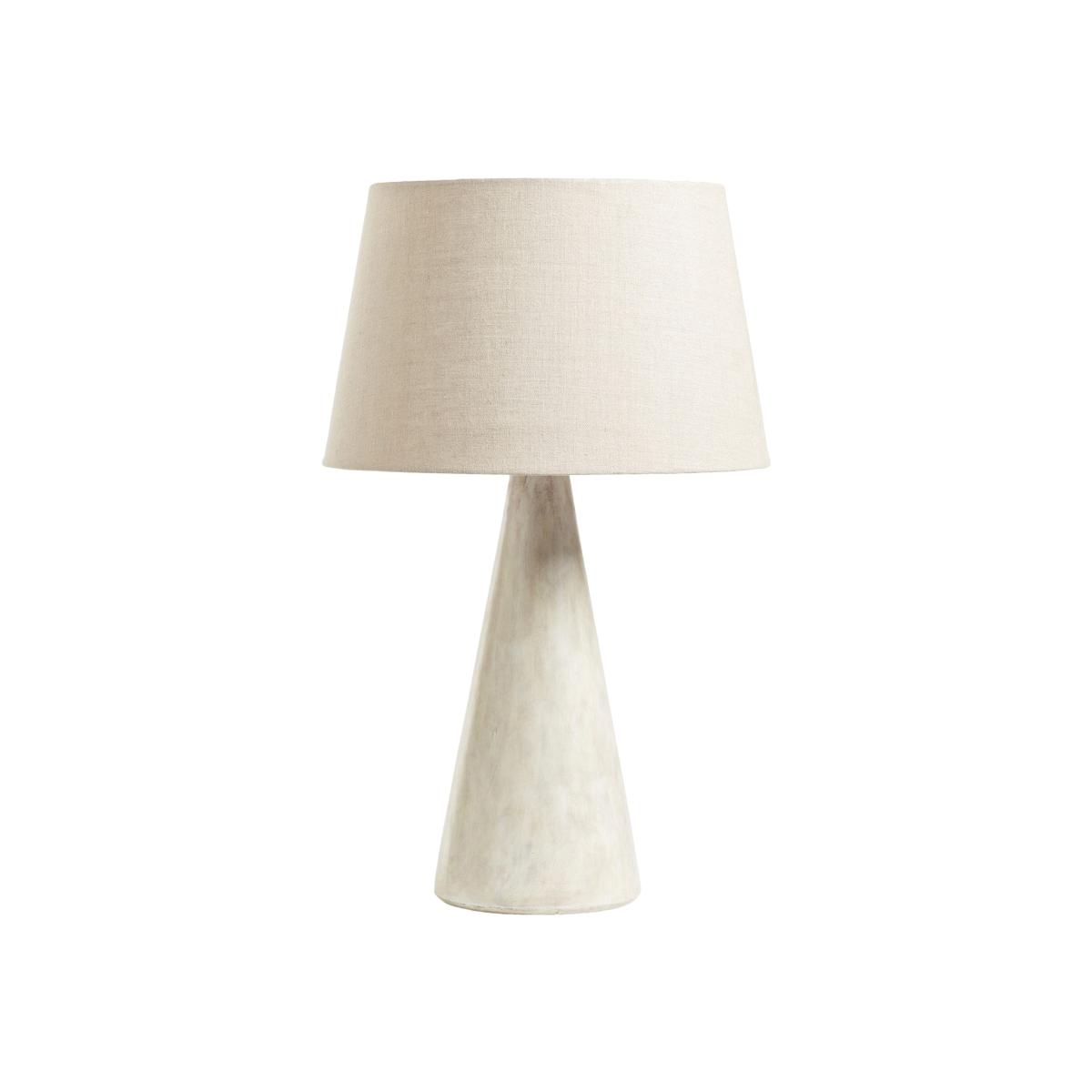 The unique cone shape of our Ernest Table Lamp is hand carved from mango wood. It’s then sanded and stained aneutral cream colour before being sanded again to create the brushed, matt appearance. The lamp’s texture is partly due to its hand-painted nature and partly a result of the wood’s natural grain and the sanding process. This all creates tonal variation that will be different from piece to piece.