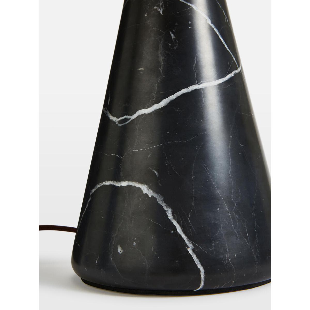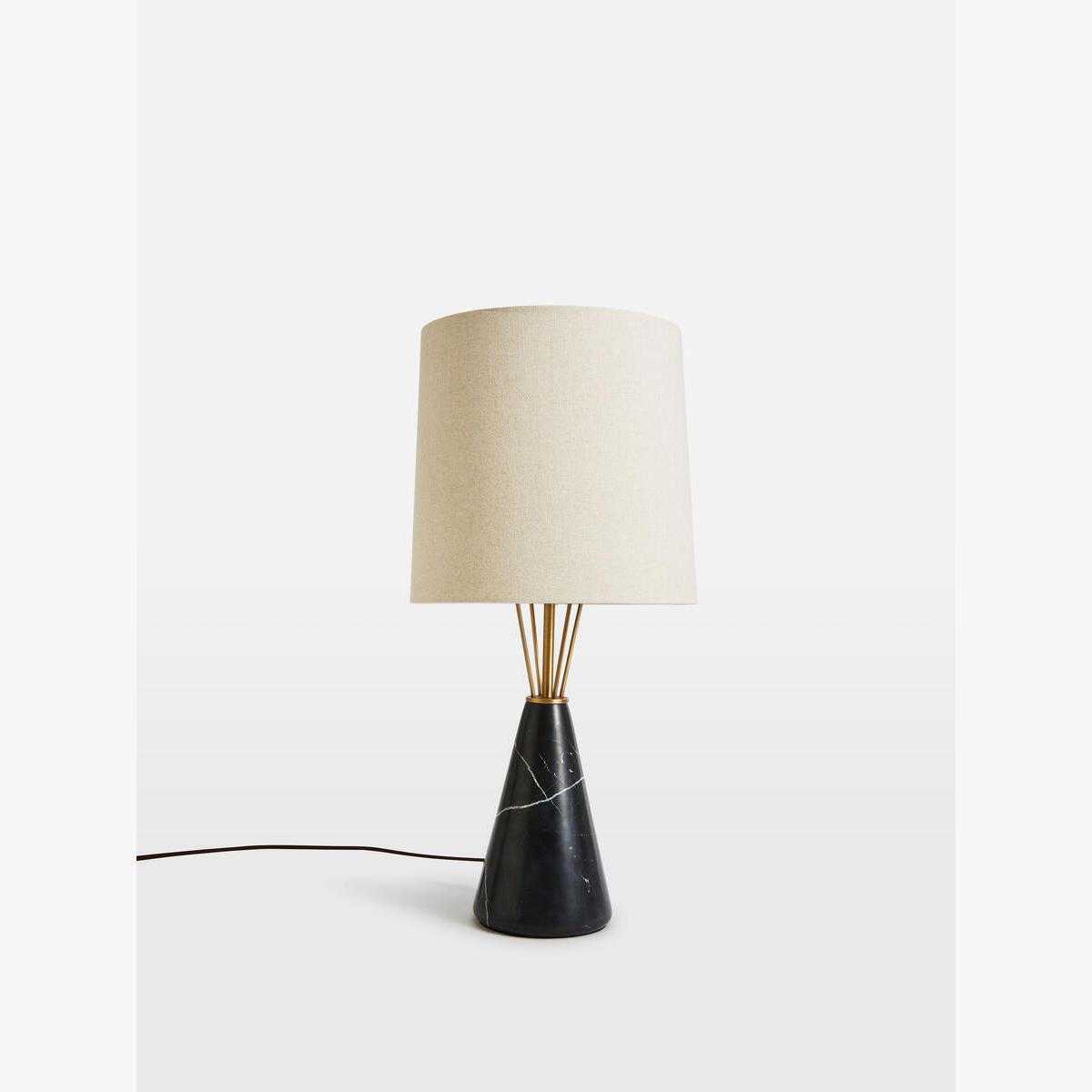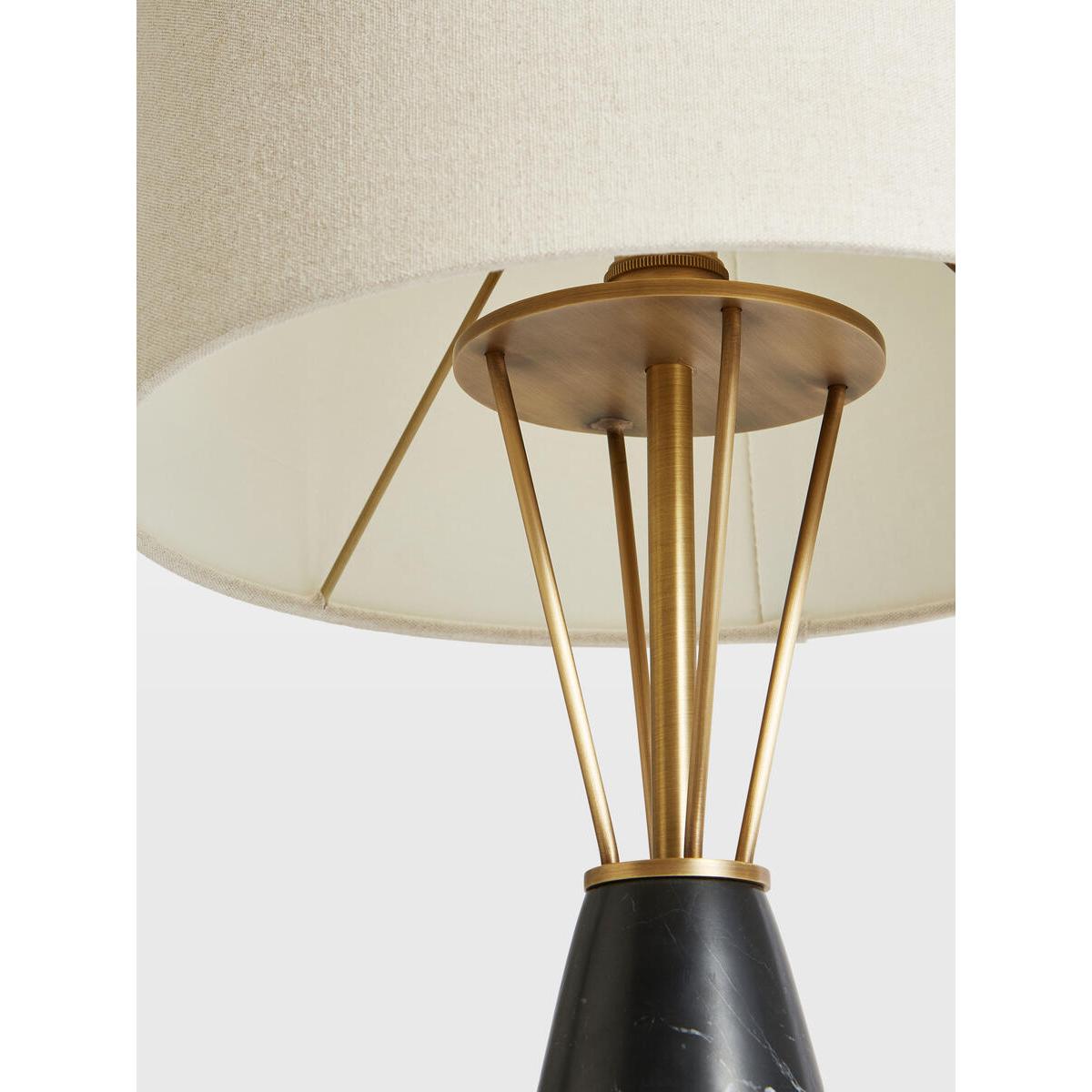 Inspired by Soho House Rome, the Ernest table lamp features a conical, honed Italian black marble base, which has natural variations in the stone, making each piece entirely unique. Accented with antique brass detailing, also known as raw or uncoated brass, ours is brushed and left without a protective coating. It therefore ages over time and develops a beautiful patina that adds character to new and old homes alike. Complete with a lined, natural linen shade for an ambient glow, this style is an ideal bedside lighting option. Cone-shaped base Honed Italian marble base Antique raw brass detailing Lined, natural linen shade Dimmable Inspired by Soho House Rome