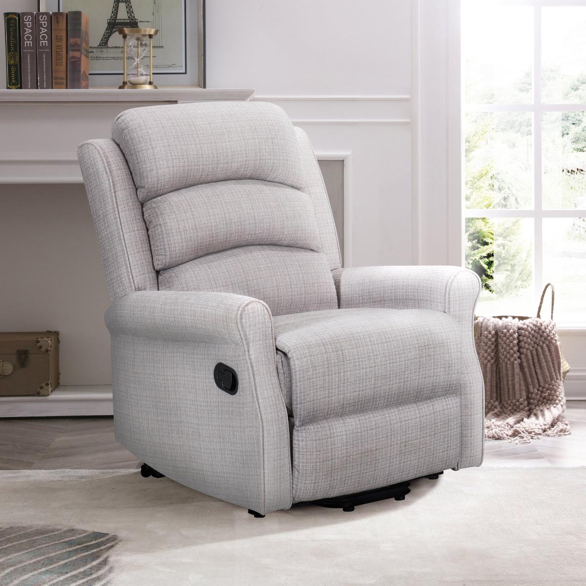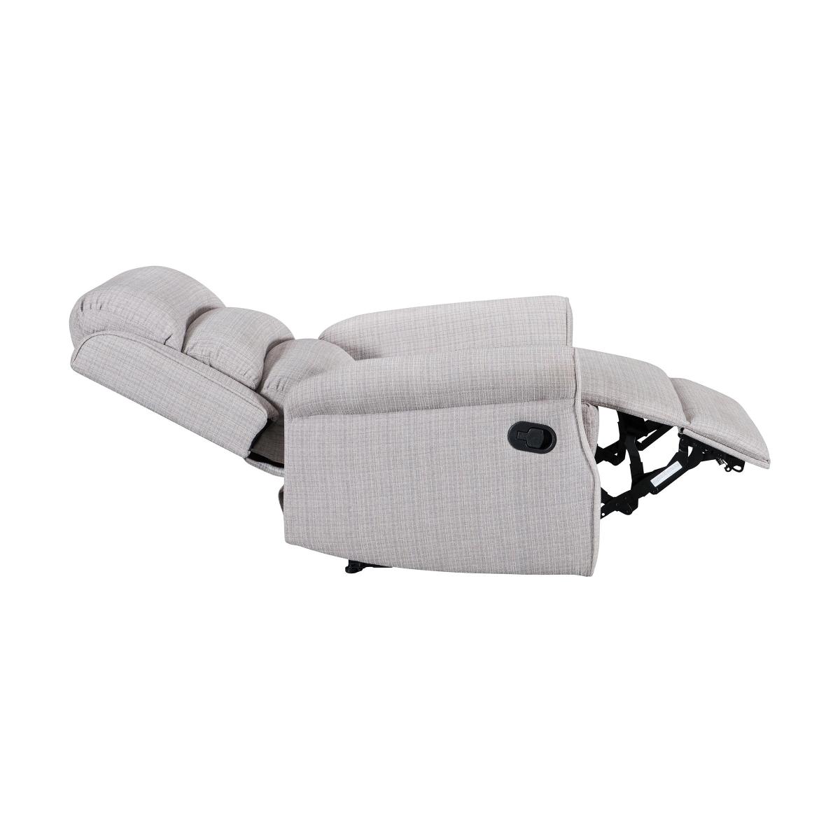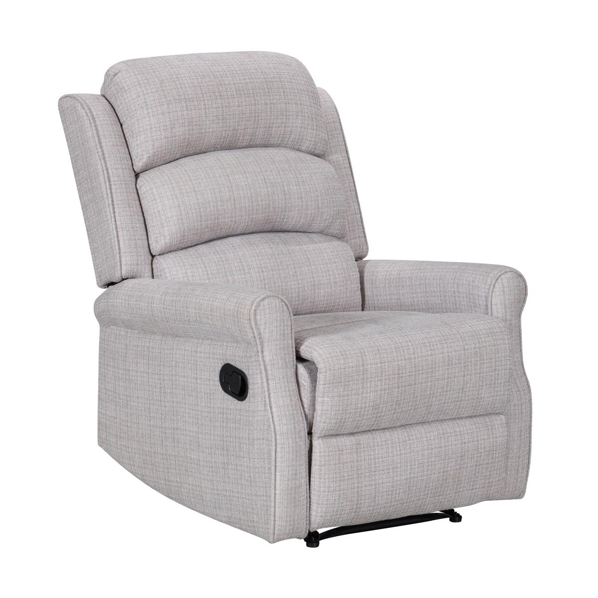 I love this recliner for its textured weave and neutral tone, which makes it incredibly versatile for a variety of interiors. It works particularly well in cosy, contemporary, or Scandinavian-style spaces, where its understated design can be complemented with soft throws and cushions for added comfort. For styling tips, pair it with light wood or muted tones to enhance the natural feel, or add a pop of colour through accessories to create visual interest. Its manual reclining feature makes it practical without compromising on style, making it a great choice for both instinctive relaxation and sleek living room aesthetics.