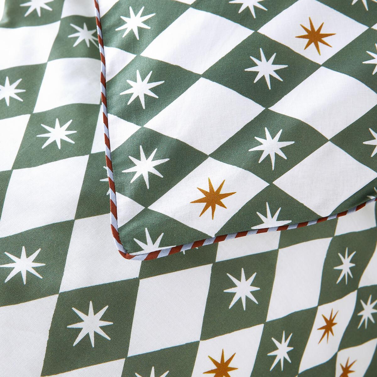 A vintage style with a geometric design. Here is Ernesto, cotton bed linen with colourful and rhythmic graphic patterns. A signature design by La Redoute Interiors. Cotton is part of our daily lives. We love it for its suppleness and softness. Easy Care, it is ideal for the beds of young and old alike!Product Details • 100% cotton • Contains 50% recycled cotton • Print front and back • 144 thread count • Straight buttoned hem • Striped piping finish. Care Advice • Machine washable at 40°C • By washing your laundry at 40°C instead of 60°C, you limit energy consumption. Dimensions • 140 x 150cm: Adjustable bed • 140 x 200cm: Single • 200 x 200cm: Double • Recycled cotton. Using recycled cotton is all about conserving resources and reducing waste.