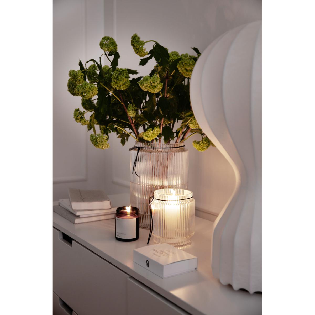I love this vase for its versatile, minimalist design and clear, textured glass that adds subtle visual interest without overpowering a space. It works particularly well in contemporary or Scandinavian-inspired interiors, where its clean lines complement neutral palettes and natural finishes. Practical styling tips include using it as a standalone piece with a single statement flower or foliage to emphasise its shape, or pairing it with other glassware for a layered tablescape. Its compact size makes it ideal for smaller spaces, shelves, or side tables, and it also lends itself well to grouping with similar textured pieces for a curated look.