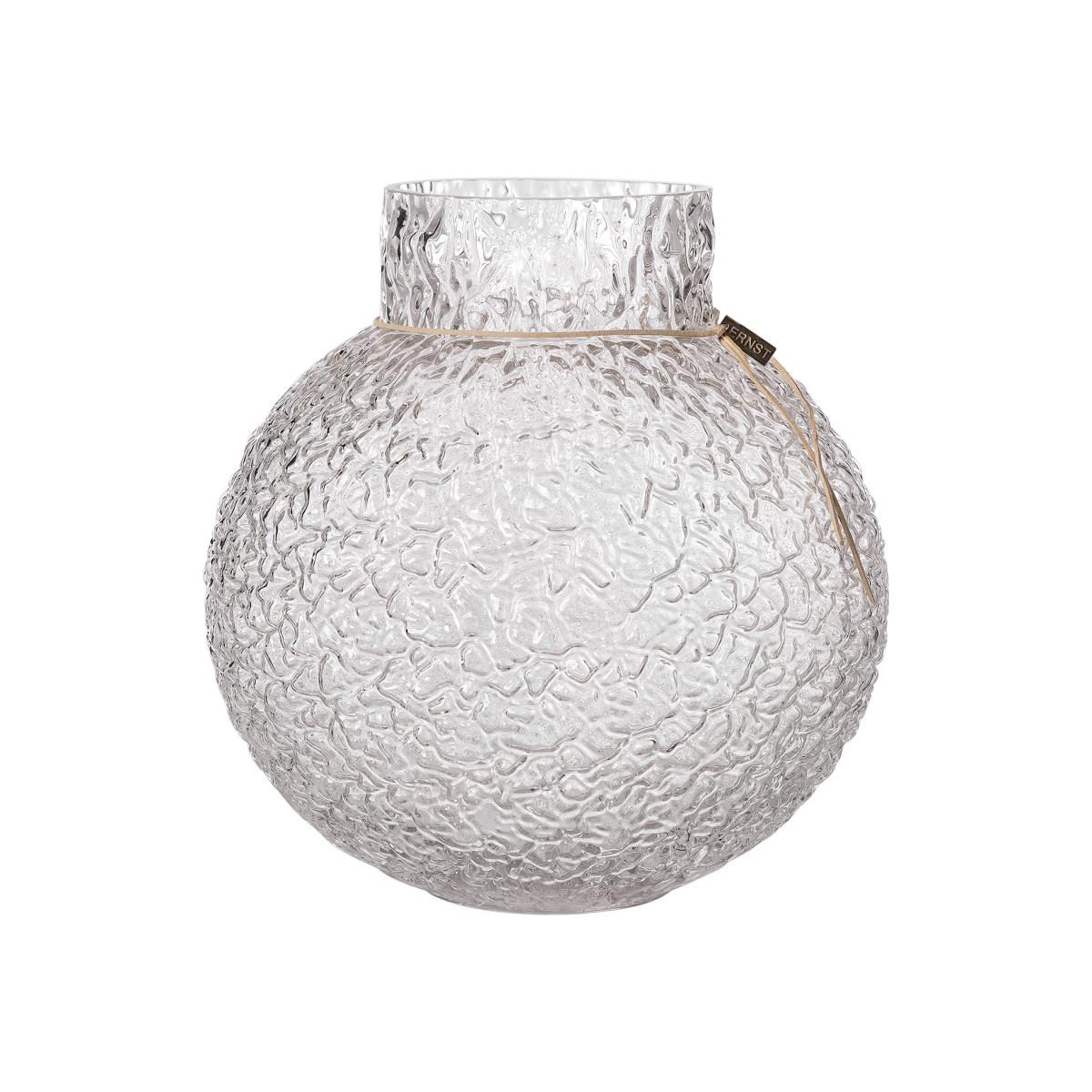 The Ernst clear glass vase structure is a round vase made of glass, and decorated with a thin leather band at its delicately tapered mouth. The vase is perfect for a beautiful flower arrangement to bring life and joy into your home, in the true Ernst Kirchsteiger spirit. The glass vase is an eye-catching feature that can be placed on the dining table, or on a bookshelf in your living room.