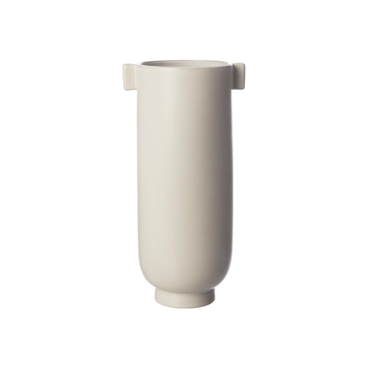 The Ernst vase with 28 cm handle is made of stoneware and is available in oblong, cylinder shapes with two decorative handles on the top. Fill the Ernst vase with fresh bouquets or dried flowers for a harmonious still life in the home. Place on its own or combine with other, smaller models in the same series. The versatile Ernst vase looks fantastic with or without flowers or similar additions, and will add a stylish touch to any room.