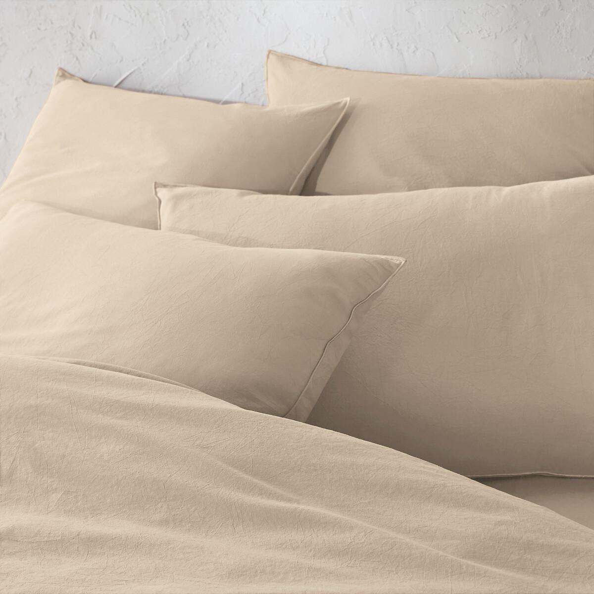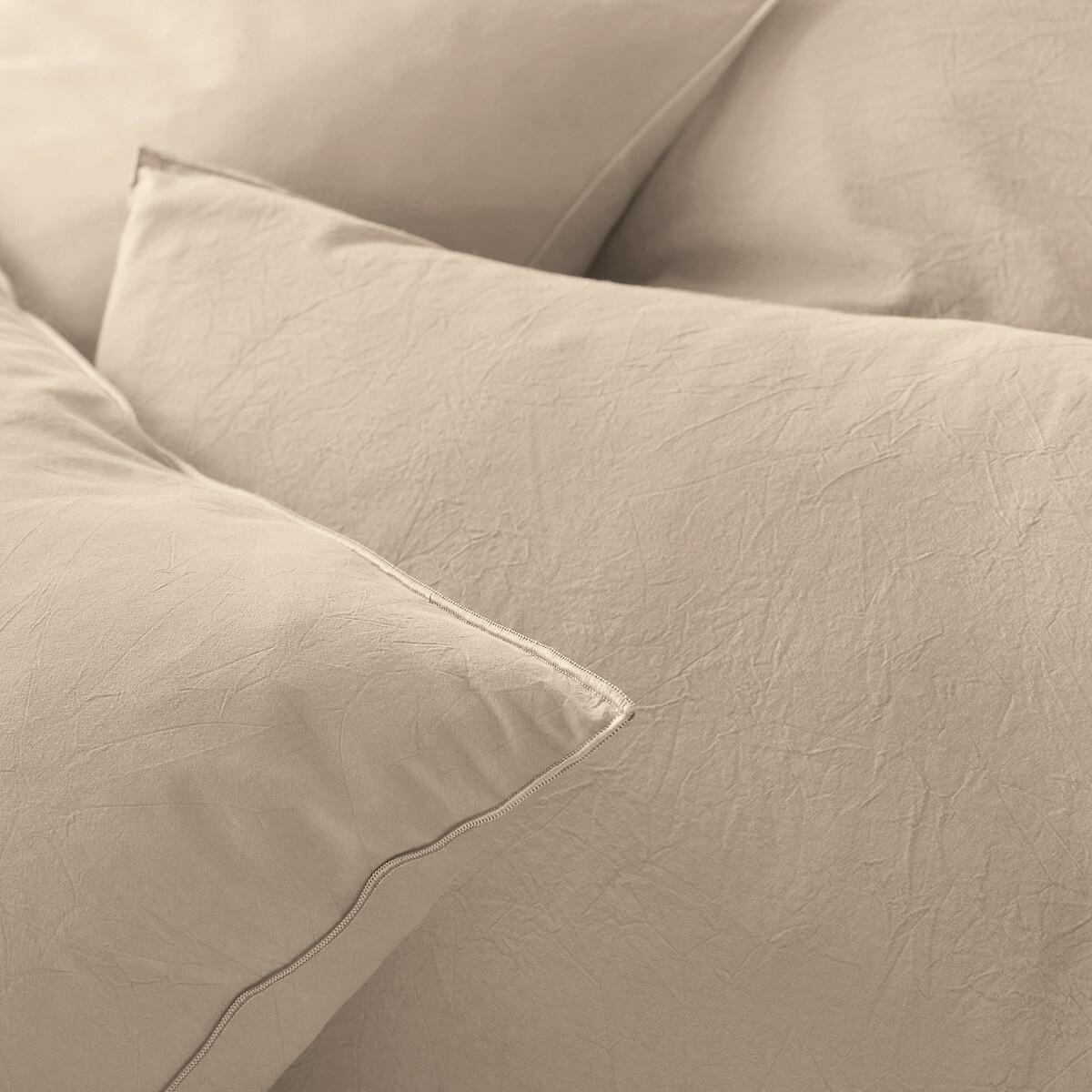 A blend of recycled cotton and virgin cotton, Erwin bed linen is distinguished by its slightly wrinkled appearance - a vintage effect - which makes it so charming. Its plain neutral colours are easy to combine with each other to create a bed set. They can also be combined with fancy linen. Cotton is part of our daily lives. We love it for its suppleness and softness. Easy Care, it is ideal for the beds of young and old alike!Product Details • 100% cotton • Contains 50% recycled cotton • Vintage effect • Satin stitch finish • Straight buttoned hem Care Advice • Machine washable at 40°CDimensions • 140 x 200cm: Single • 200 x 200cm: Double • 240 x 220cm: King • 260 x 240cm: King • Recycled cotton. Using recycled cotton is all about conserving resources and reducing waste. • OEKO-TEX® Standard 100. Standard 100 certification by OEKO-TEX® tests textile products for harmful substances via an independent, international label.