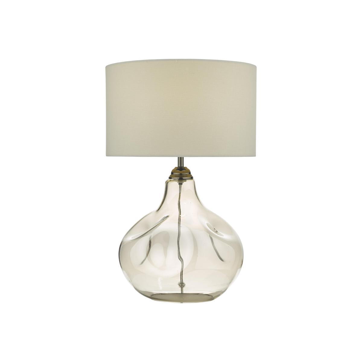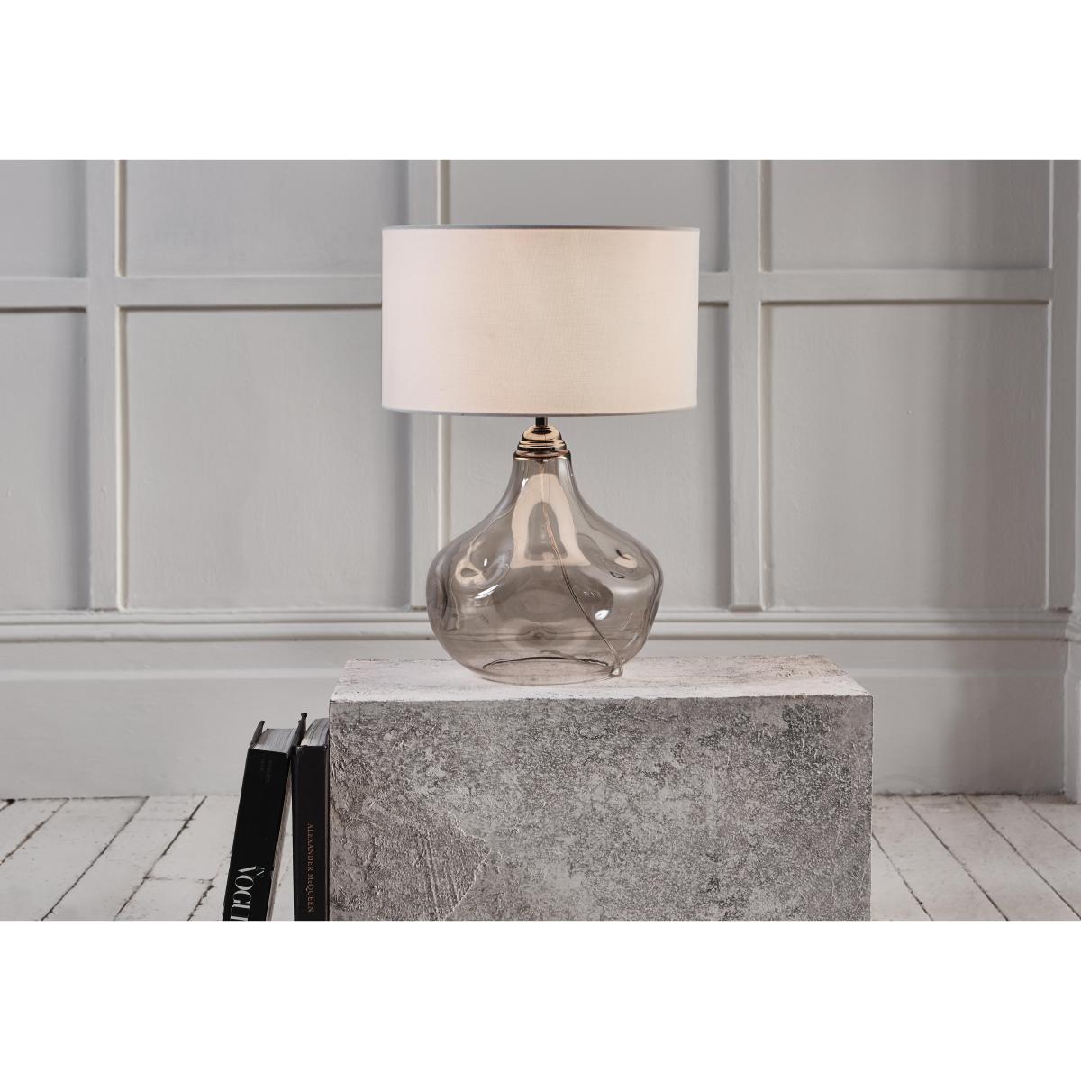 Light up your home in true contemporary style with the Esarosa Table Lamp. Its beautifully simple design catches the eye for all the right reasons – especially its freeform smoked glass base. Why you’ll love it. The very essence of elegant simplicity. A clean, contemporary and refreshingly simple design. Beautiful freeform smoked glass base. Classic white linen shade. Made with care for Furniture Village. What you need to know. Made from smoked glass. Operates with an in-line cable switch. 1 x 60w max ES GLS or BUL-E27-LED-17 (not included). Dimensions. Width: 37 cm (15 inches). Height: 54 cm (21 inches).