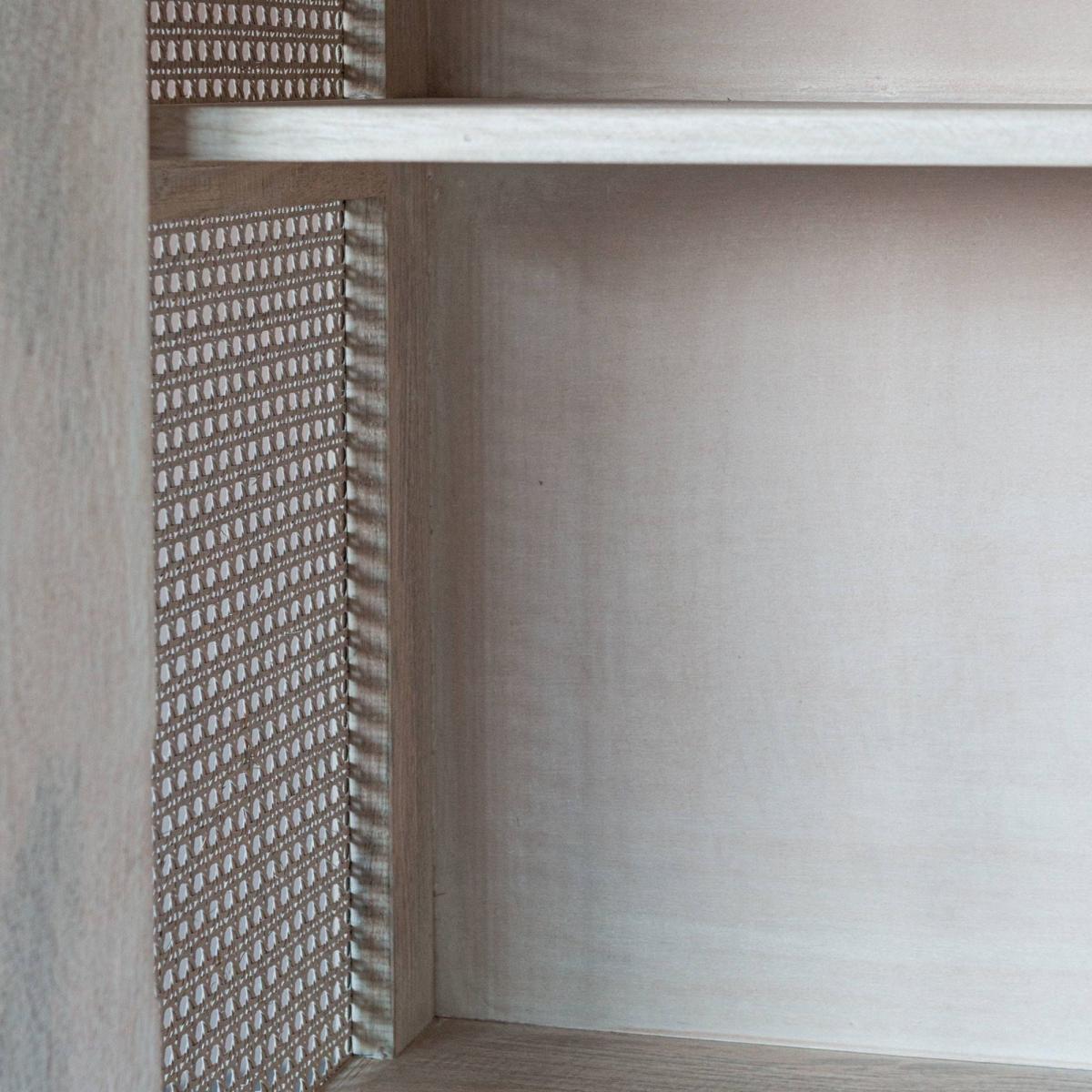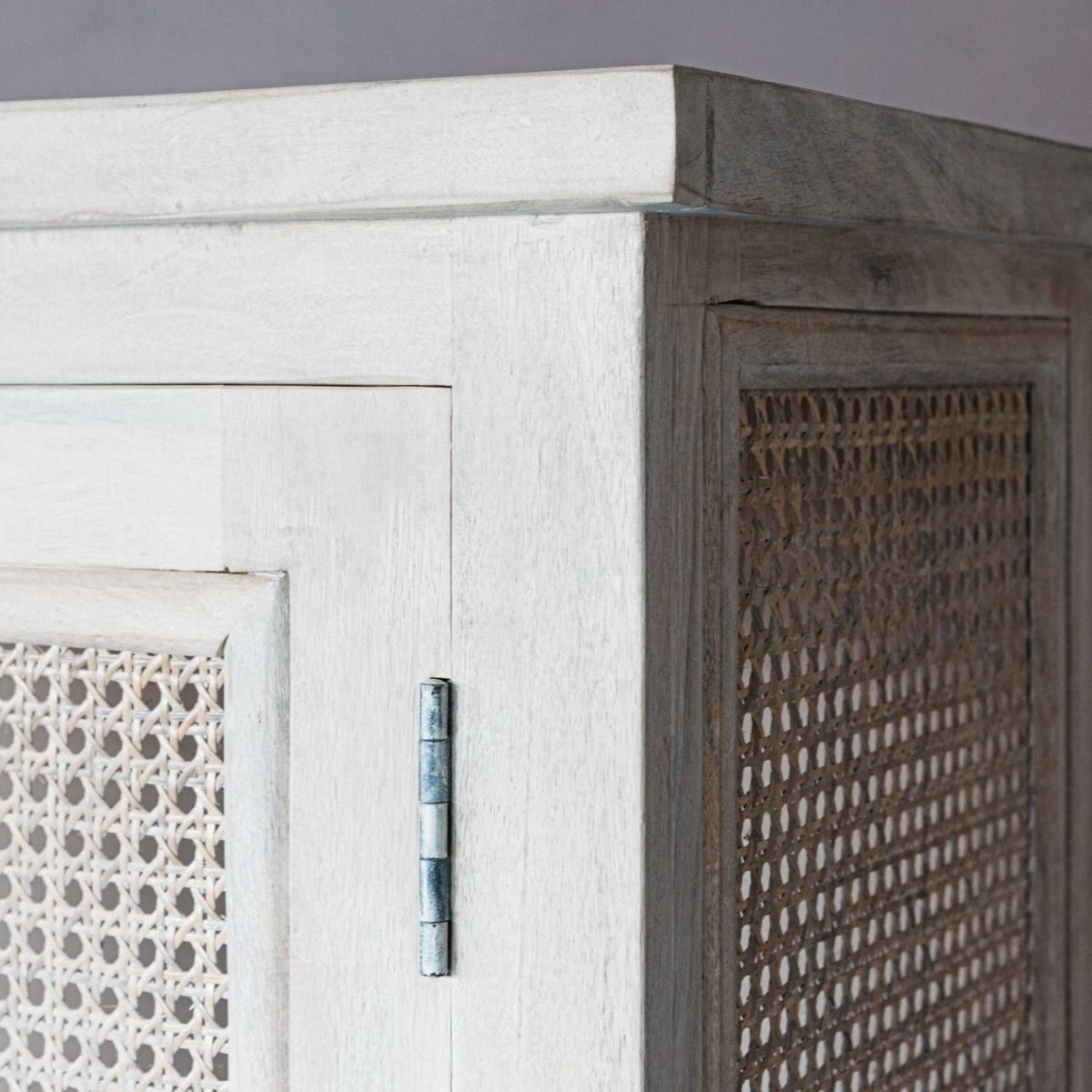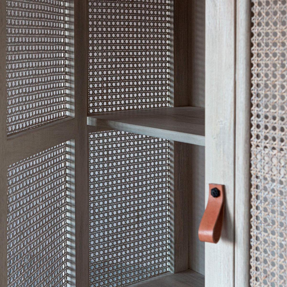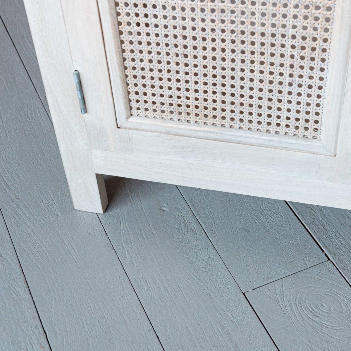 This simple elegant cabinet, crafted from sustainable mango wood in a classic whitewash, has rattan detailing, leather handles, and will add Scandinavian glamour to any room.