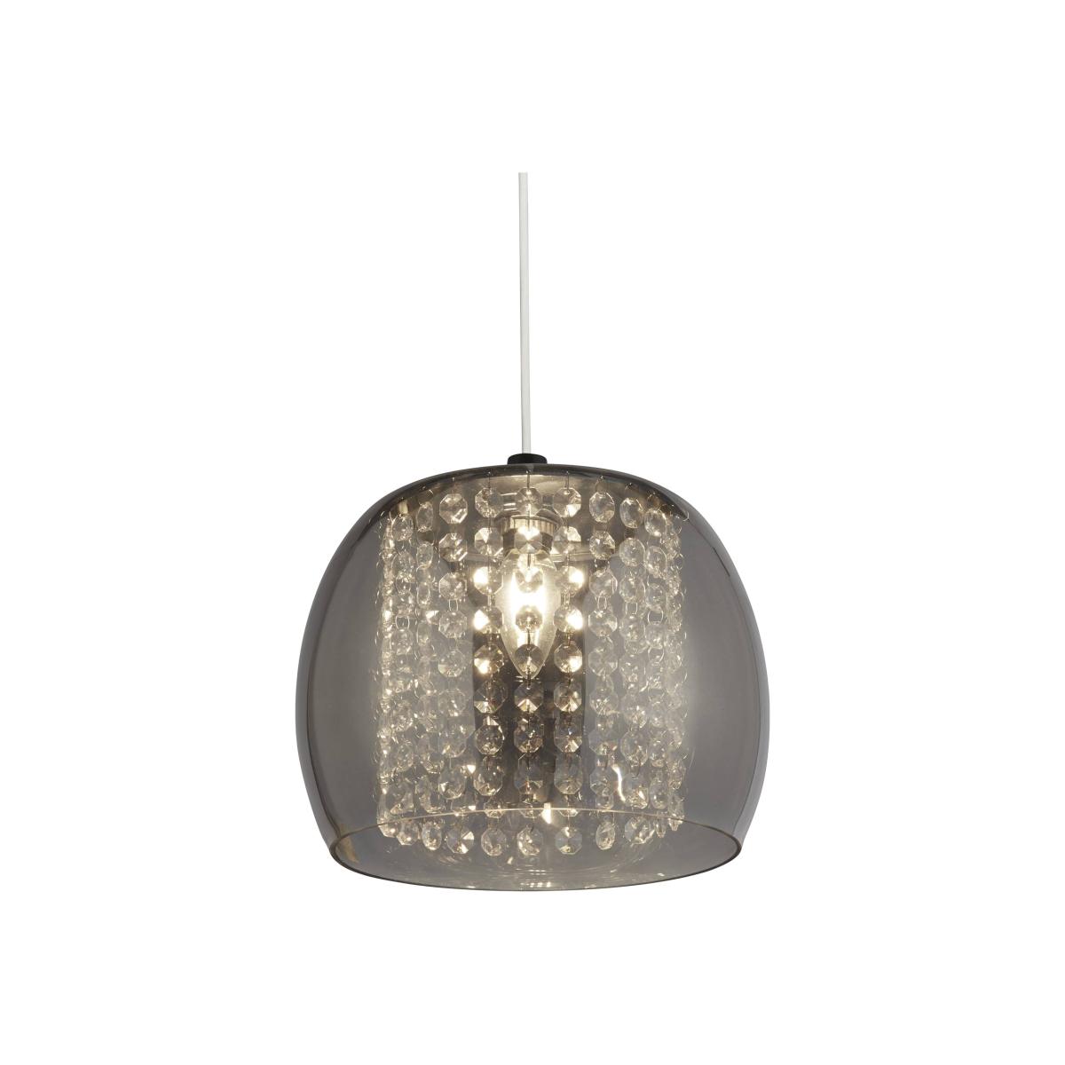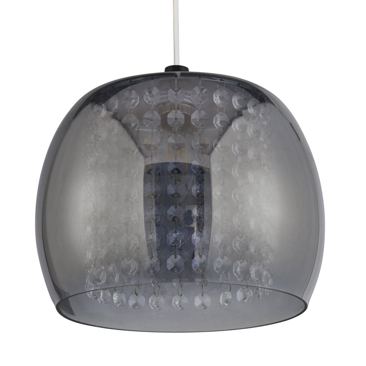Glamorous Ceiling Light Shade in smoked glass. The striking Escada Ceiling Light Shade features a smoked glass dome shape shade with hanging bead detailing that lluminates beautifully when lit. Ideal for any contemporary living room or hallway.