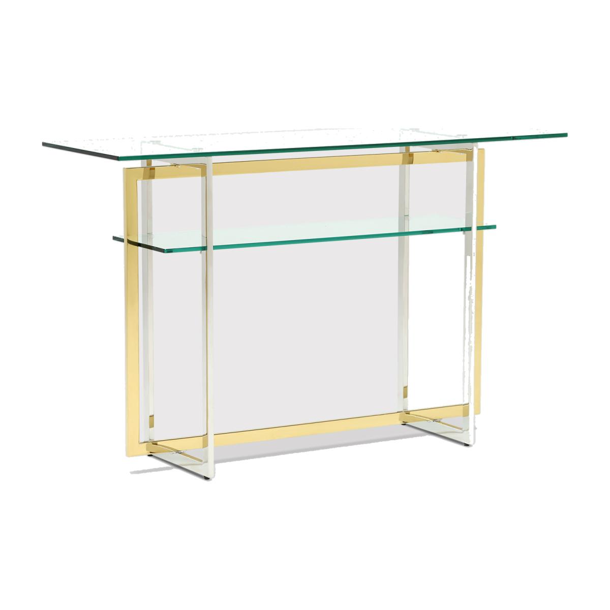 I love how the Escher keeps things sleek and contemporary with its clear glass surfaces and striking gold accents, making it a versatile piece across various interiors. It works particularly well in minimalist or modern settings, where its transparency adds openness without overpowering the space. For practical styling, consider pairing it with a few carefully selected decorative objects - like vases, books, or small sculptures - that can be displayed on the glass top, while its lower shelf is perfect for storing items that you want to keep within eye reach. It’s also great positioned in a hallway or behind a sofa to create a functional focal point without cluttering the room.