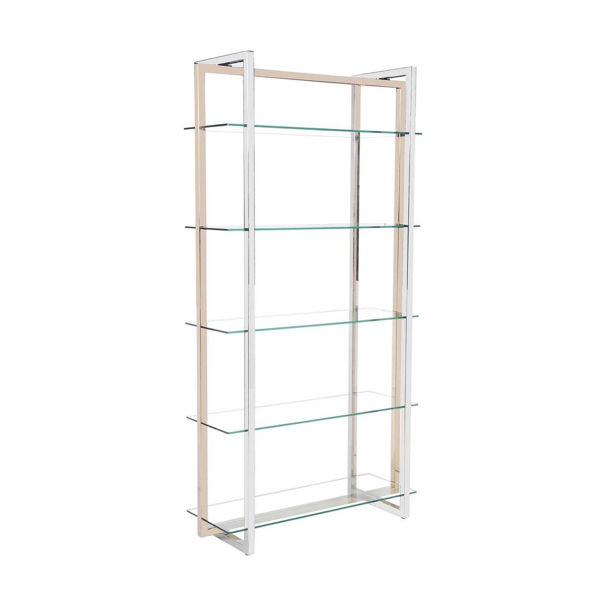 Featuring clear glass shelves for a light, open look and a polished steel frame that’s beautifully reflective, the Escher glass shelving unit is the perfect place to showcase your treasured accessories. Its metallic silver and champagne finishes will complement both warm and cool colour schemes, while the slim, modern design offers ultimate elegance.