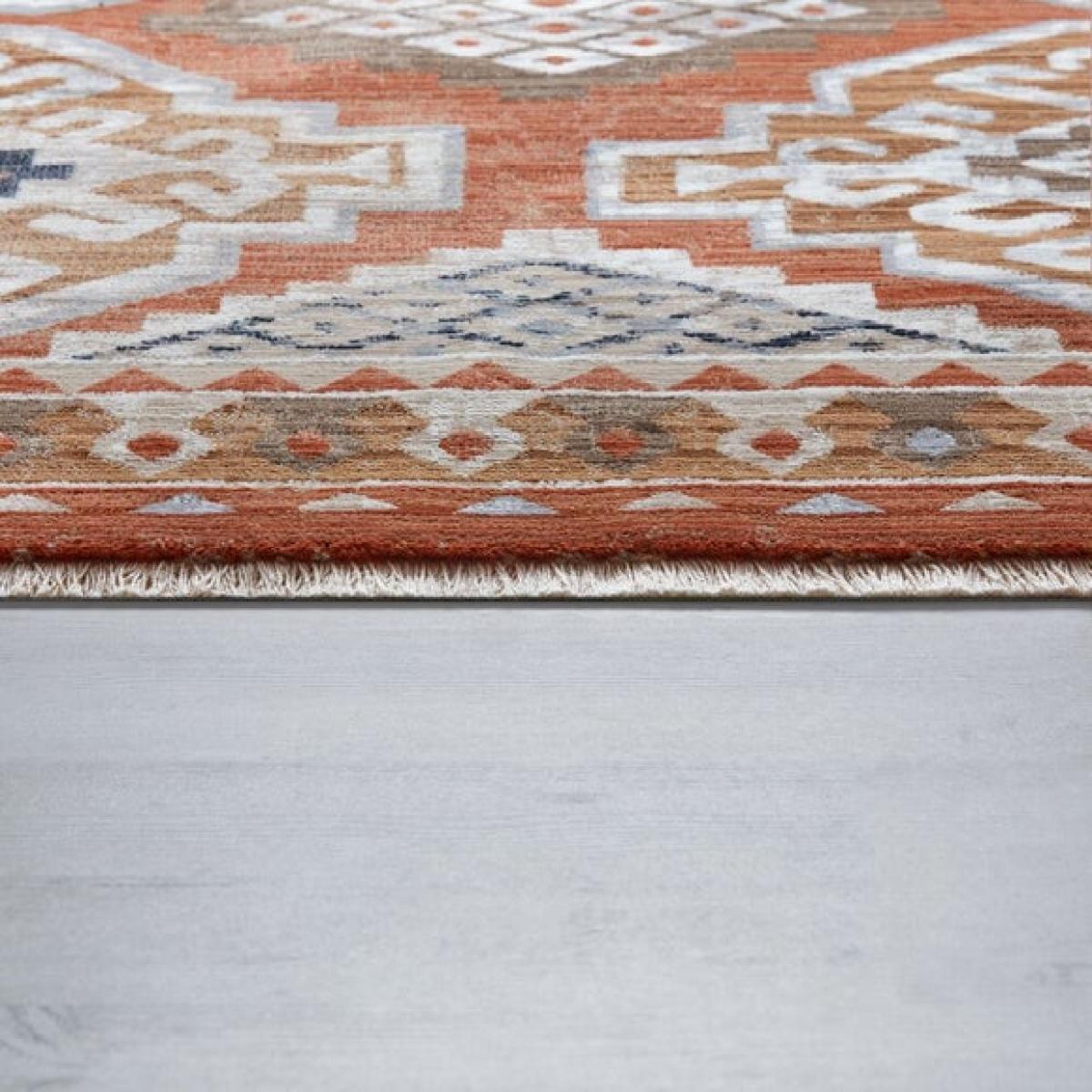 * Traditional Design * Suitable for High Traffic Areas * Geometric Pattern This rug is designed to infuse your home with a captivating twist. This spectacle boasts rich colors and an eye-catching geometric pattern, adding a warm, homely feel to any living room or bedroom. Crafted from durable 100% Polypropylene, the Esin Rug prioritises durability, making it an ideal choice for high-traffic areas within your home.