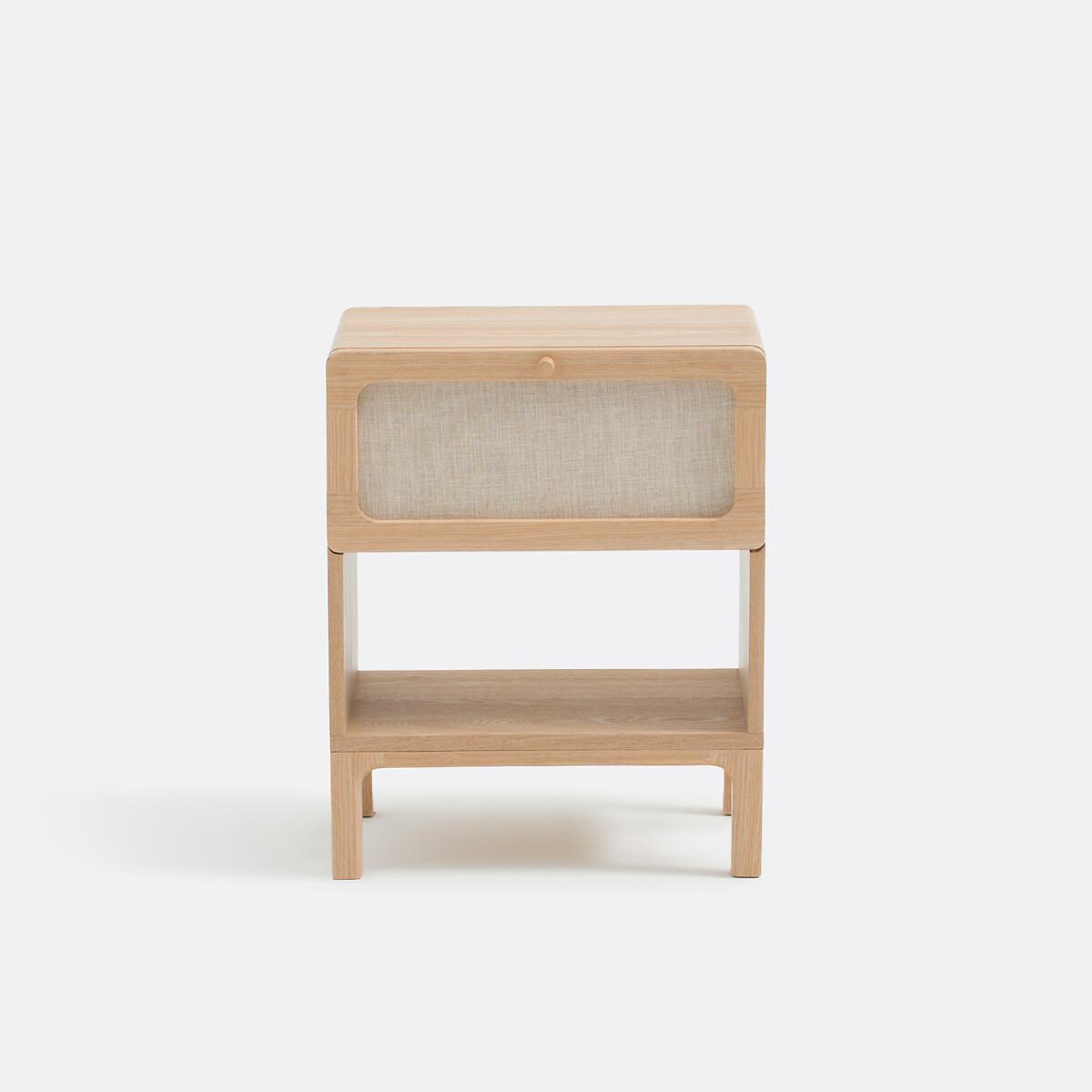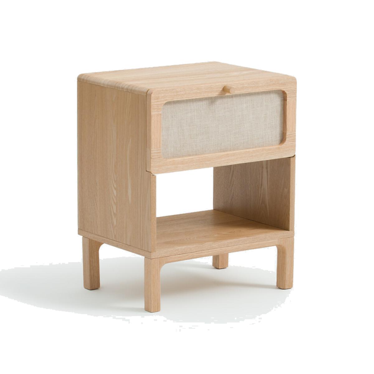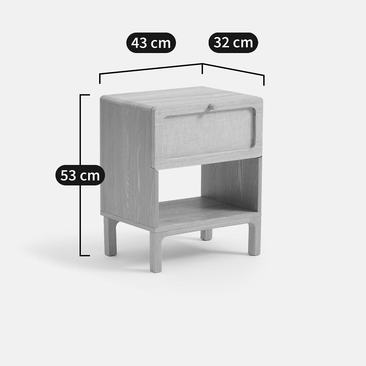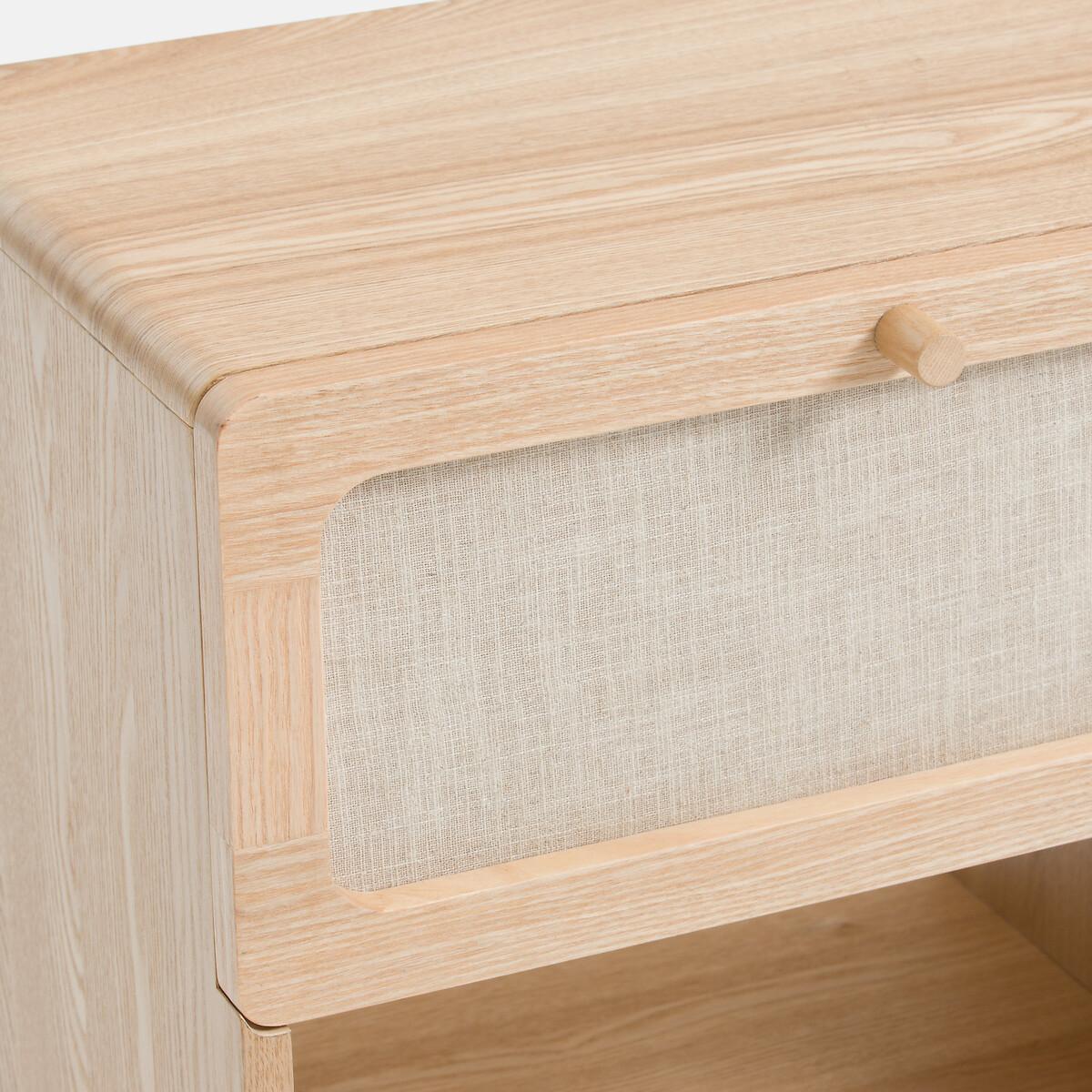Sober, timeless design. The Esmara bedside table reinterprets vintage codes : minimalist design, a combination of linen and light wood. A perfect balance between aesthetics and functionality. An exclusive by La Redoute Interiors Product Details • 1 drawer with steel runners + 1 compartment • Structure in MDF and hevea with ash veneer • Solid ash legs and drawer handle • Nitrocellulose varnish finish • Drawer front covered with 55% linen and 45% cotton fabric • FSC® certified woodDimensions. Overall • Width: 43cm • Height: 53cm • Depth: 32cm • Weight: 11kg. Usable space • Drawer: W34.5 x H15 x D26.5 cm • Compartment: W40 x H18.5 x D32 cm • Height of legs: 13cmDelivery:. This product requires assembly. Available for home delivery. Note! Please ensure all passageways and doorways are wide enough. • WOOD FROM SUSTAINABLY MANAGED FORESTS. FSC® certified wood comes from forests that are environmentally, socially and economically well managed. • WOOD FROM SUSTAINABLY MANAGED FORESTS. FSC® certified wood comes from forests that are environmentally, socially and economically well managed. Parcel Dimensions1 parcel • W53 x H26.5 x D43 cm. 12.8kg.