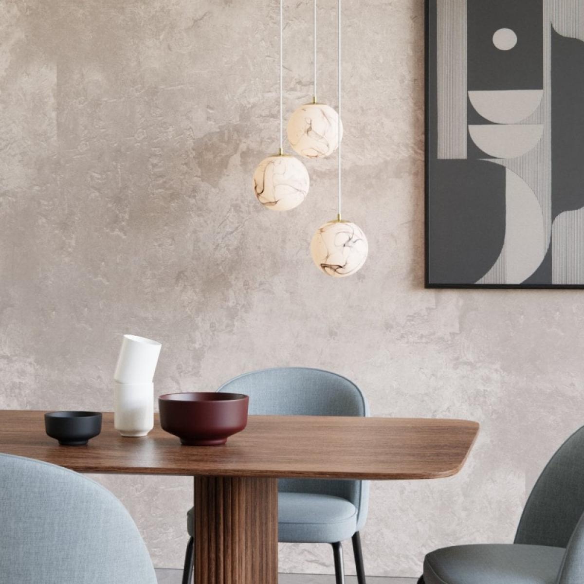 I love the Esme cluster pendant for its modern yet timeless appeal, effortlessly elevating both contemporary and transitional interiors. The marbled glass adds subtle sophistication and texture, while the brass accents bring warmth and a touch of luxe. It works particularly well in kitchens, dining areas, or over a breakfast bar, where it can create a striking visual focal point without overwhelming the space. For practical styling, consider hanging it at varying heights to add visual interest and ensure the bulbs emit ample light. Pairing it with minimalist or neutral furnishings will allow the pendant to stand out beautifully, but it can also complement richer colour palettes for a more dramatic effect.