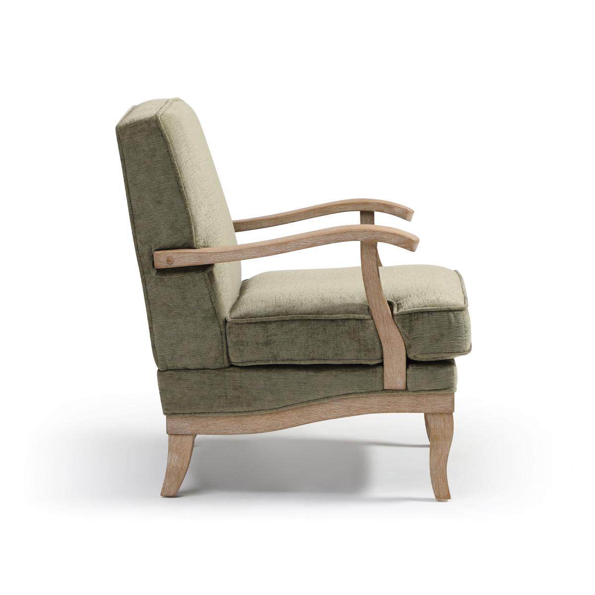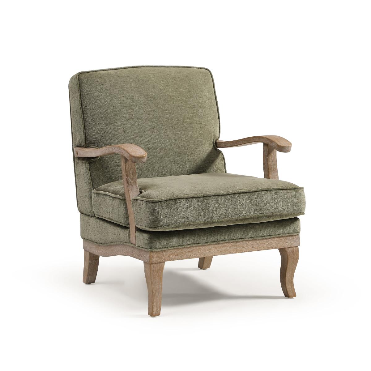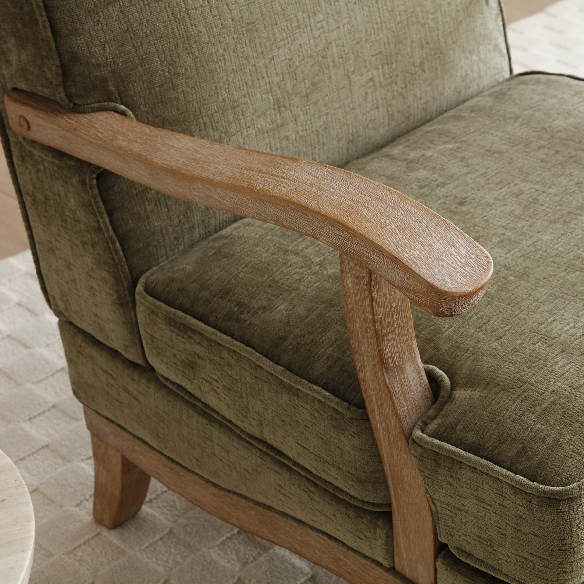 That olive chenille chair is a great pick for adding texture and warmth without overwhelming a space. The softly distressed fabric and sculptural oak arms work equally well in mid-century, Scandi or modern country interiors and look smart against neutral walls or painted brick. For styling, place it on a natural-fibre rug, layer on a textured linen cushion in a warm tone and drape a lightweight wool throw over the back. Finish the look with a slim tripod floor lamp and a small oak or rattan side table to create a relaxed reading corner.