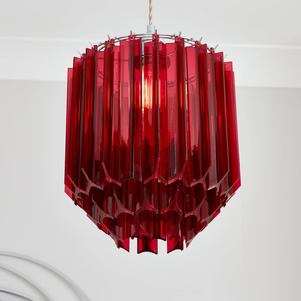 * Eye-Catching, Staggered Design* Made from Durable Acrylic* Easy Fit - No Electrician Required* Requires: Standard (GLS) Bulb With its staggered acrylic design, the Esme Easy Fit Pendant Shade is sure to pack a punch. A real statement piece, this pendant shade is easy to assemble and requires no electrician.