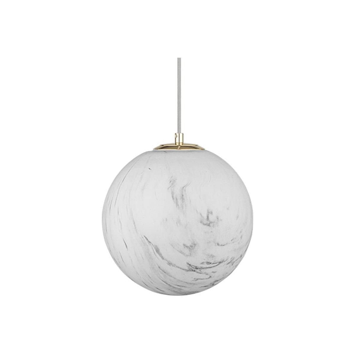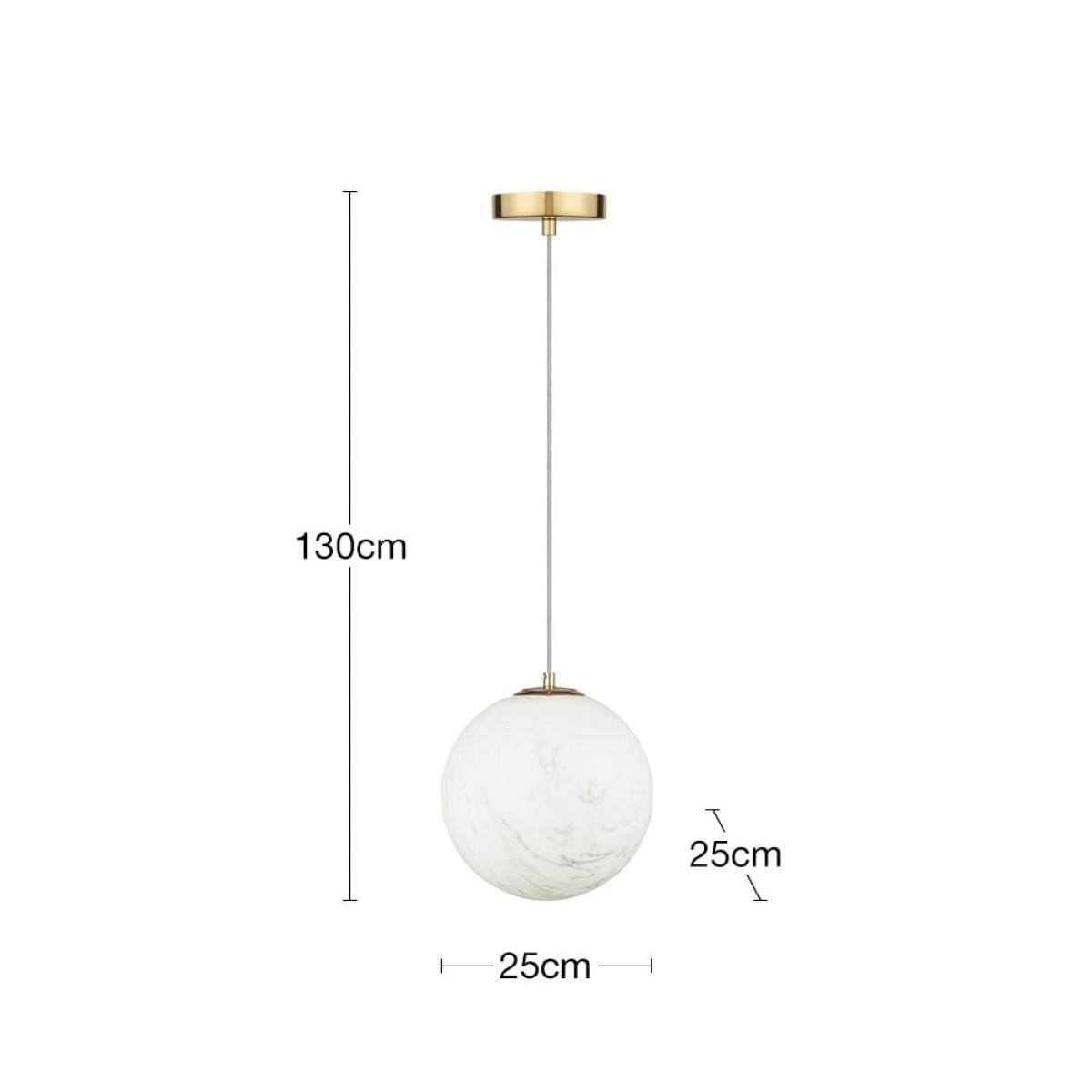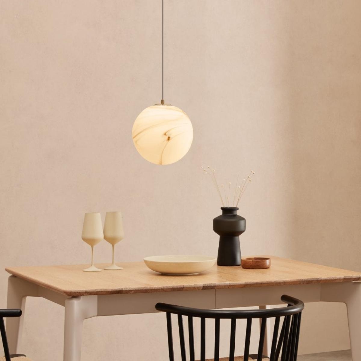 I love this pendant lamp for its sleek yet sophisticated look; the marbled glass adds a touch of modern elegance while the brass detailing elevates its luxe feel. It's particularly versatile, working well in both contemporary and transitional interiors - think minimalist kitchens, stylish dining rooms, or even as a statement piece over a kitchen island. Practical styling tips include pairing it with warm LED bulbs to highlight the marble’s subtle veining and creating a layered lighting scheme with wall sconces or table lamps. Keep the surrounding decor understated to let the pendant truly shine, or pair it with other brass accents for a cohesive look. It’s a great way to add a touch of understated glamour without overpowering the space.