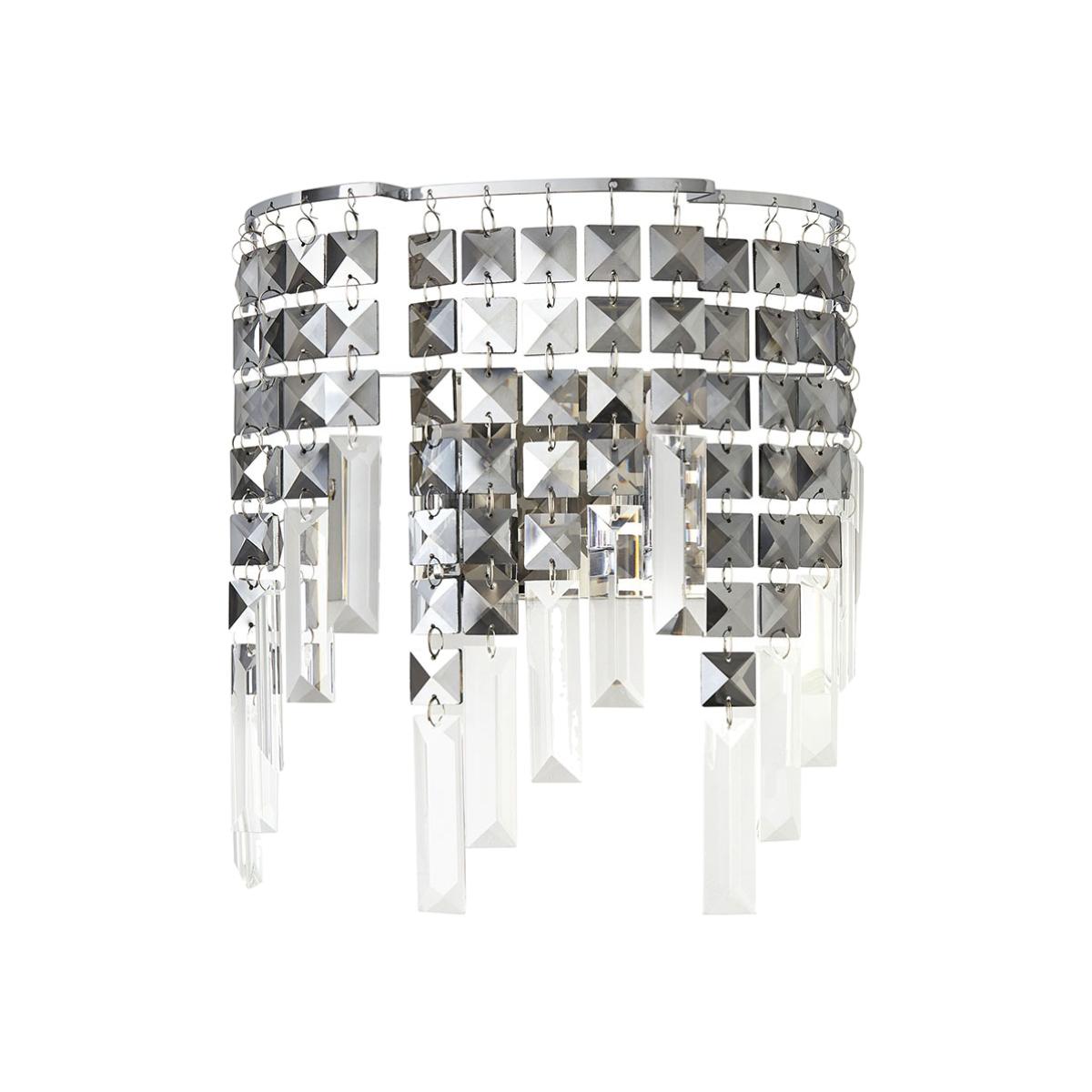 A contemporary accent light, the beautiful Esme Wall Light features a shining chrome finish that beautifully complements the smoke crystal effect plates they shimmer in the warm glow of light. This wall mounted fitting is ideal for any modern home, bringing a touch of glamour to the space and gorgeously accentuating the darker features within your room. Style this light along a hallway or double up the fitting beside your bed for a stylish look.