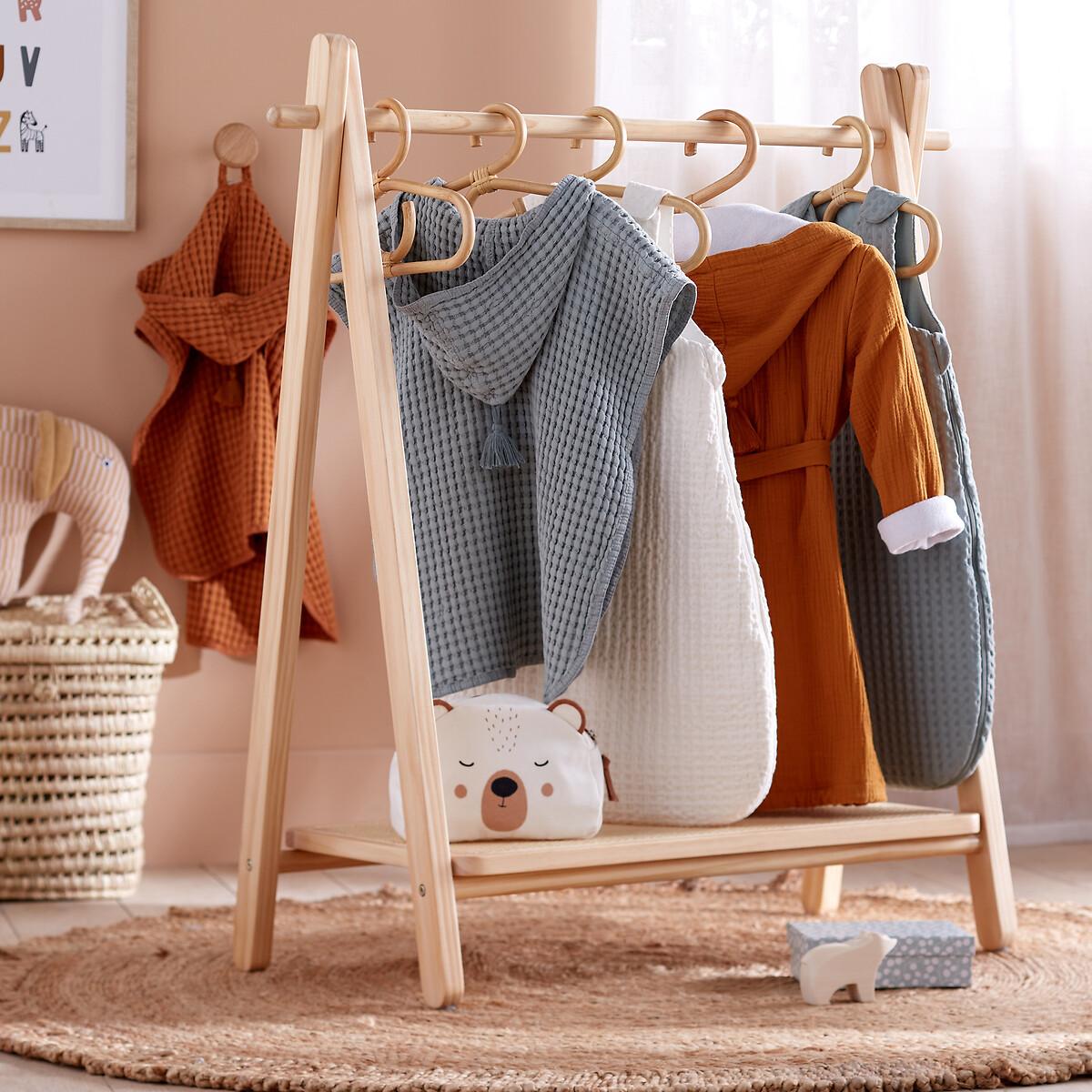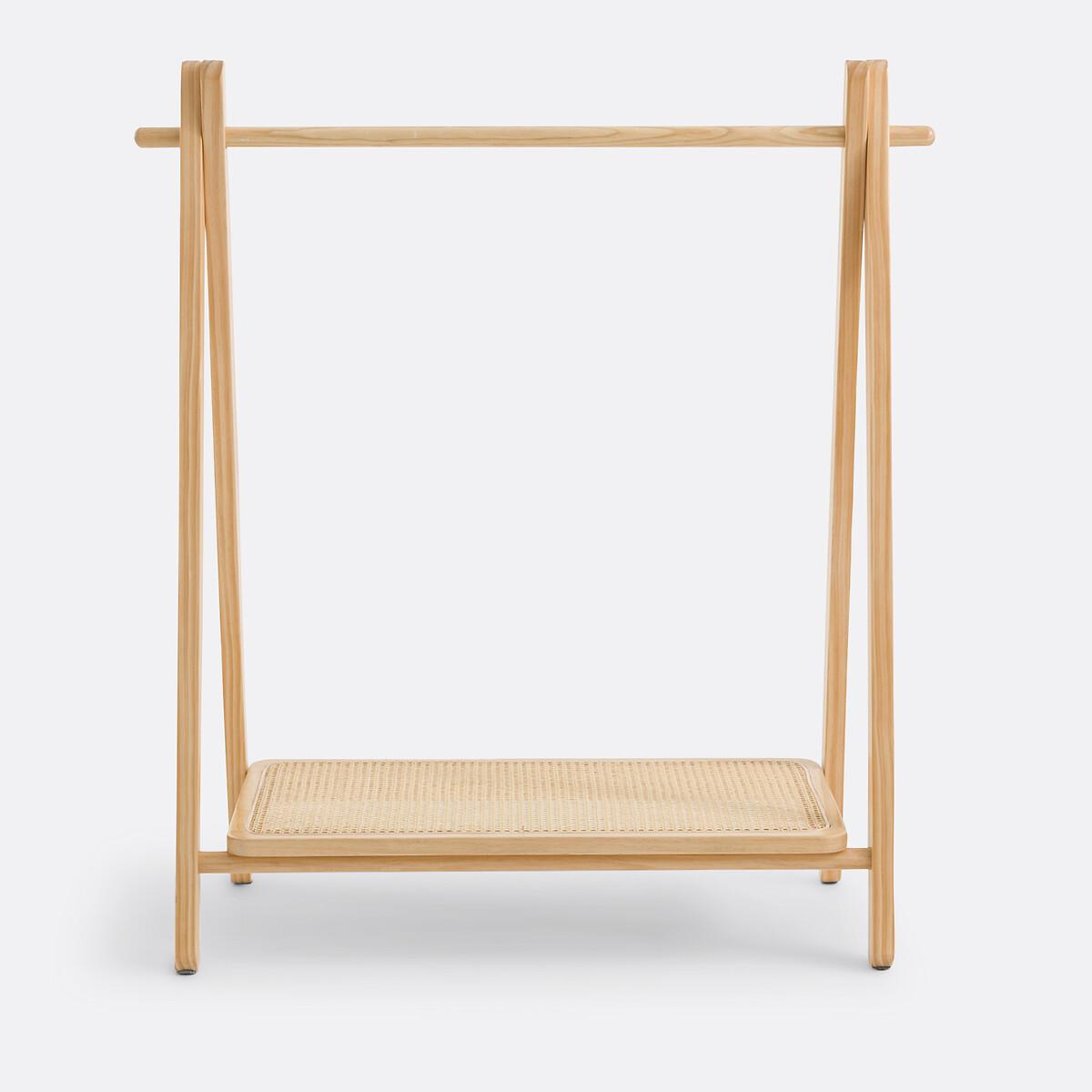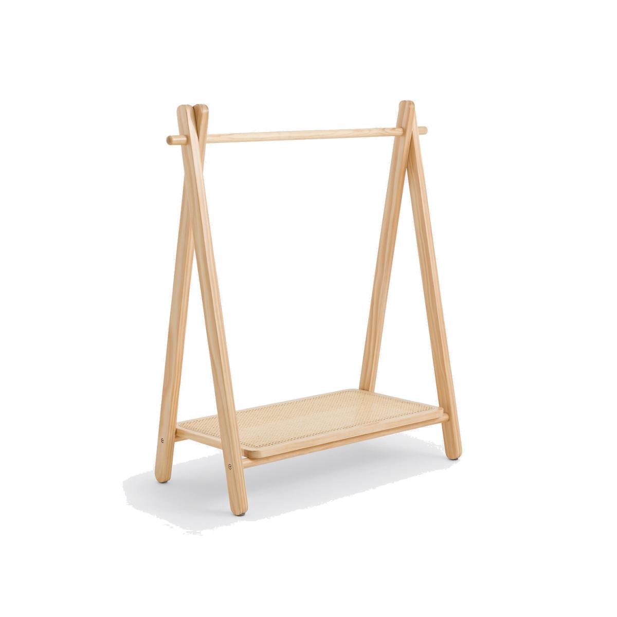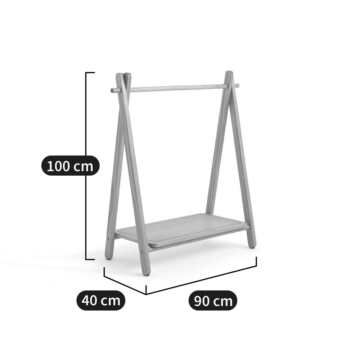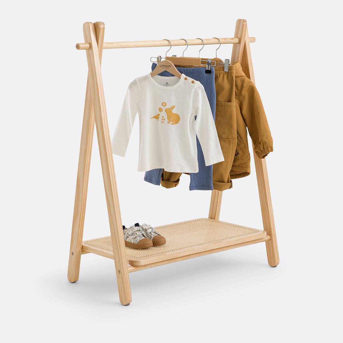 In solid pine and rattan cane, this is Esmee. Practical, 1 shelf at the bottom to store shoes and 1 hanging rod to hang toddlers' clothes. Product Details • Solid pine and rattan cane • Nitrocellulose finish • 1 hanging rail • 1 shelf at the bottom • Clothes rack for small children. Dimensions • Width: 90cm • Height: 100cm • Depth: 40cmDelivery:. Assembly required. Available for home delivery. Note! Please check that all access points are large enough to accommodate your delivery (doors, stairs, lifts).Dimensions and weight of parcel1 parcel • L111 x H10 x D47cm. 5.3kg.