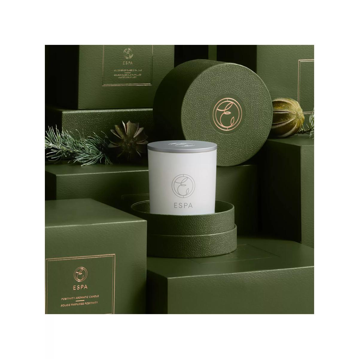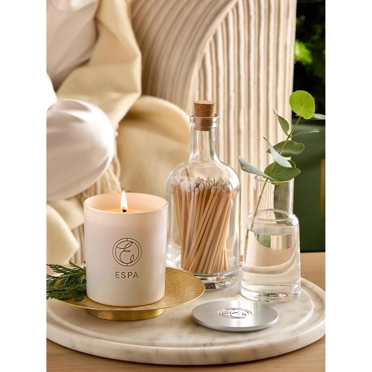 Christmas harmony comes to your home with this aromatherapy candle. ESPA's Winter Spice Candle provides a festive fragrance to delight the senses and spirit. Let the warming aroma of Sweet Orange, Clove, Cinnamon and Ginger envelop you and your space with festive spice and comfort. In a limited edition scent and housed in an exclusive festive vessel. The 200g hand-poured candle is crafted from natural wax and pure essential oils.