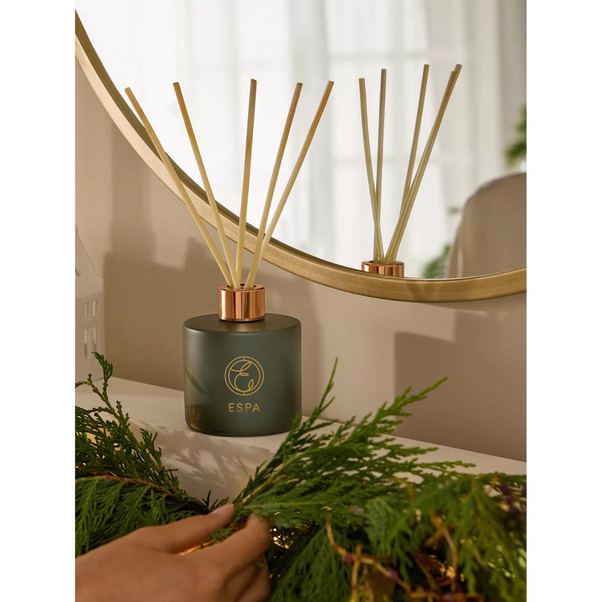 Bring the delectable scents of Christmas to your home with ESPA's Winter Spice Reed Diffuser. Let the warming aroma of Sweet Orange, Clove, Cinnamon and Ginger envelop you and your space with festive spice and comfort. ESPA's Winter Spice Reed diffuser is hand-poured and equipped with snow-white natural reeds, bringing aromatic elegance to your home. Featuring rich essential oils, the festive fragrance evenly disperses throughout the day for winter well-being. How to use: Place reeds into liquid and bask in the aroma.
