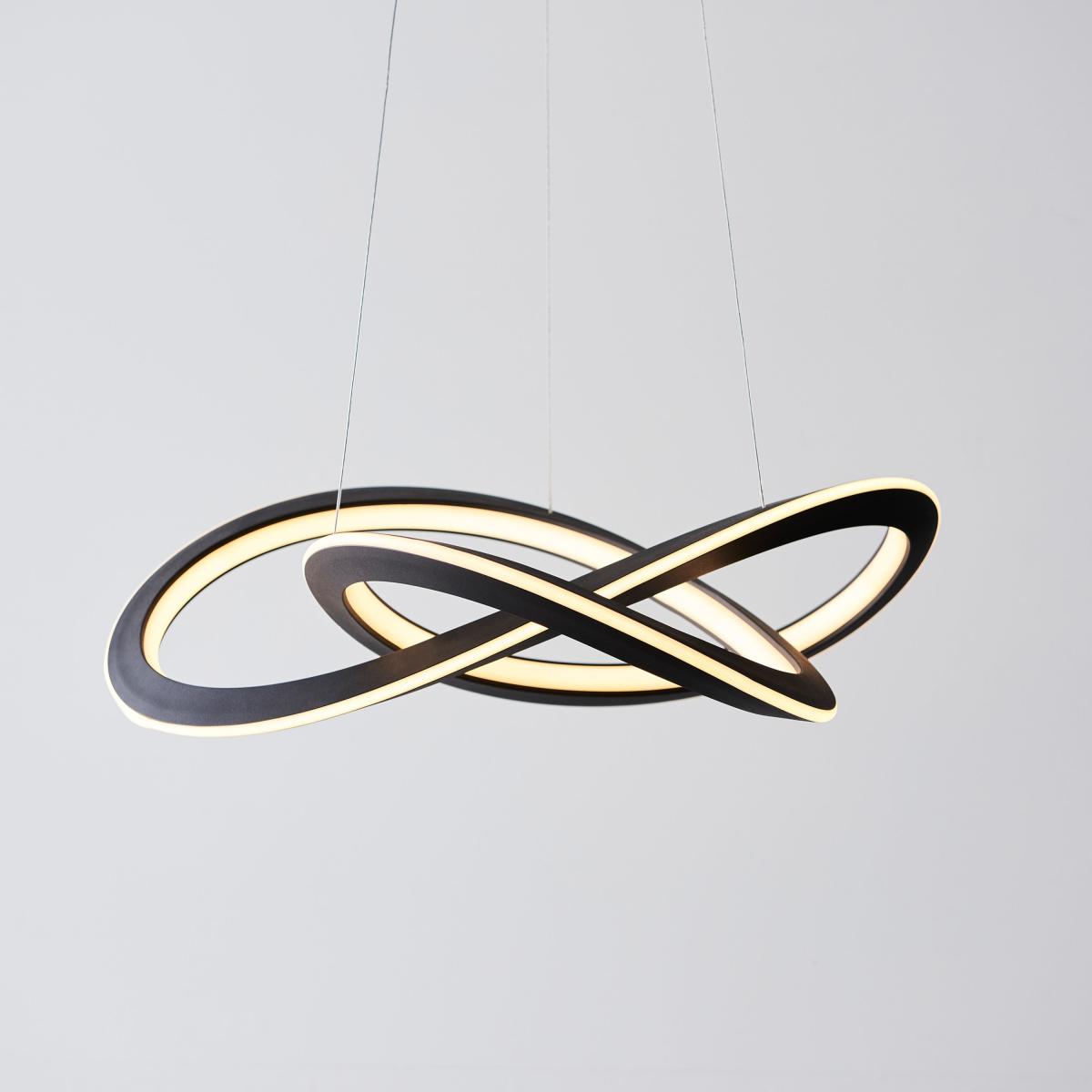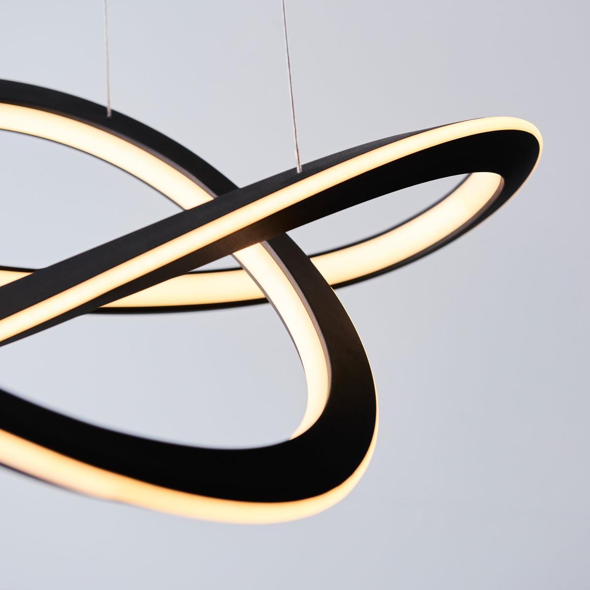 A modern floating form in stylish matt black; the calming curves of this LED pendant beautifully illuminate to bring tranquillity and style to interior spaces.