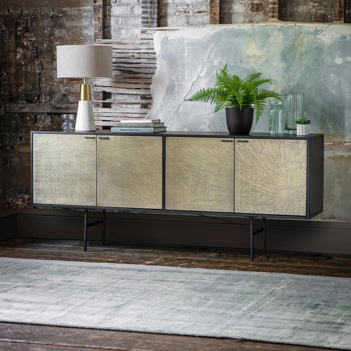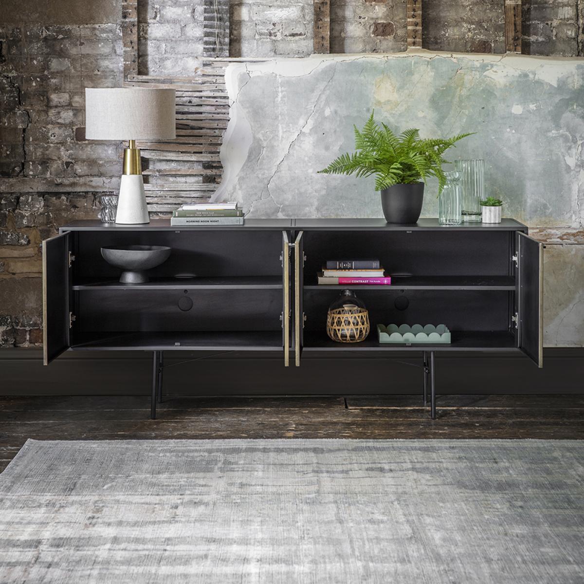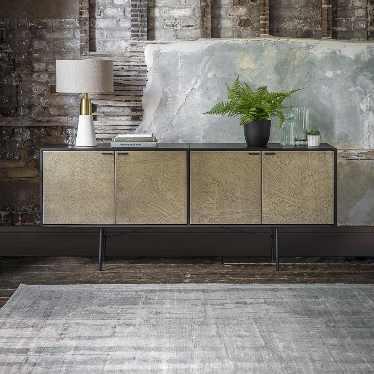 Bringing a luxe look to any living area, dining room or open-plan space, our new Espirito Sideboard combines a powder coated iron design with matching legs and intricate detailed finish on the four doors. Ideal for enhancing a classic or contemporary décor, the sideboard opens up to reveal stacks of storage inside with two shelves on either side, perfect for books, board games, vinyl or dining accessories such as placemats and cutlery. The top also makes a great display area for lamps, vases, framed photos and potted plants.
