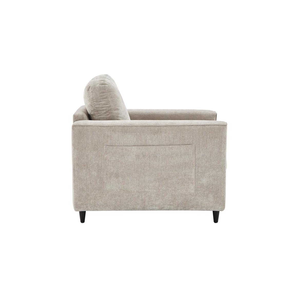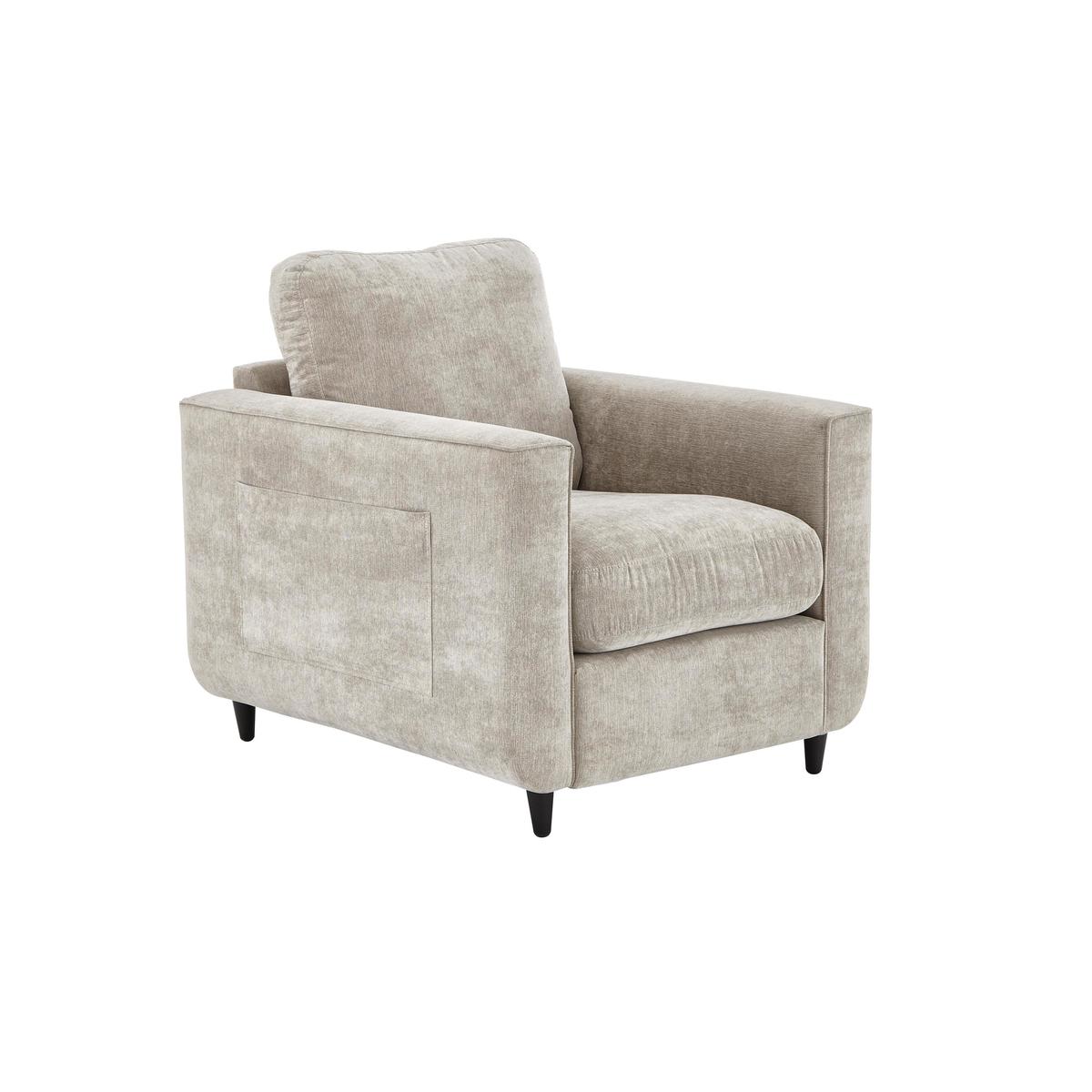 Comfy sprung seat Soft and velvety fabric upholstery Clean and contemporary style The gorgeous Esprit armchair has it all style, comfort and practicality. Fashionable square edged arms, clean lines and stylish turned beech legs bring the style. And velvet soft fabric upholstery and deep seat and back cushions bring the comfort, with the foam with fibre wrap seat cushion resting on a sprung seat. As for practicality, how about the concealed side pocket in the left arm for storing your magazines or remote controls? Its easy to relax on this lovely compact, handcrafted and surprisingly affordable armchair, and you can even add a scatter cushion or two if you wish, available to buy separately. The Esprit armchair is part of the beautiful Esprit collection of sofas, sofa beds and stool beds.