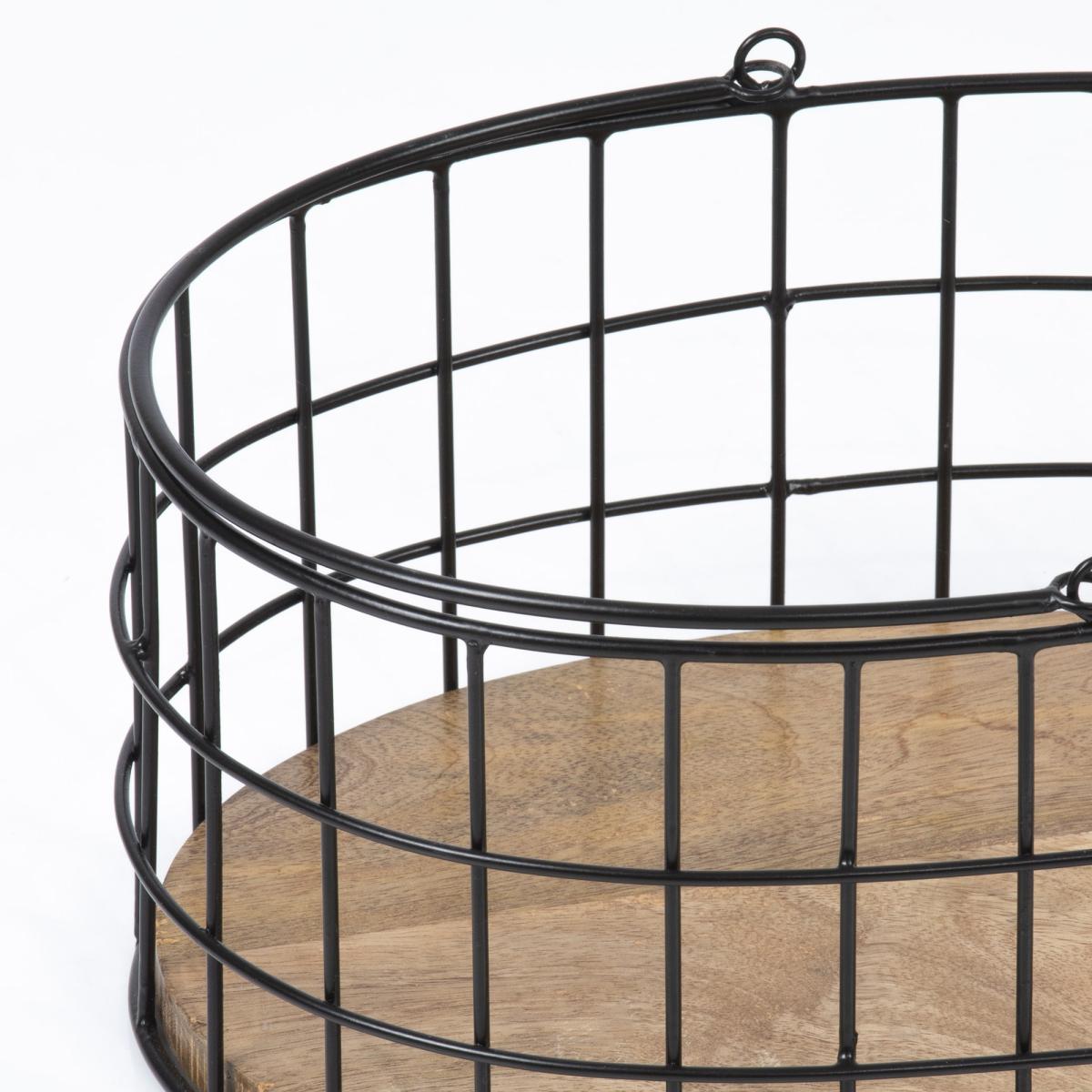The Esselle Aldwych Set of 2 Nested Metal/Wood Baskets in Black combines industrial chic with natural warmth, featuring a sleek metal frame and wooden base for a stylish and functional storage solution. Aldwych is a duo of nested baskets from the Naturelle collection, featuring a base crafted from mango wood and a sturdy metal frame. These stylish baskets are designed with handles for easy carrying throughout your home. Small basket: 16.5 x 21 x 9cm. Large basket: 21.5 x 28 x 12cm